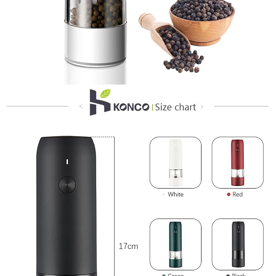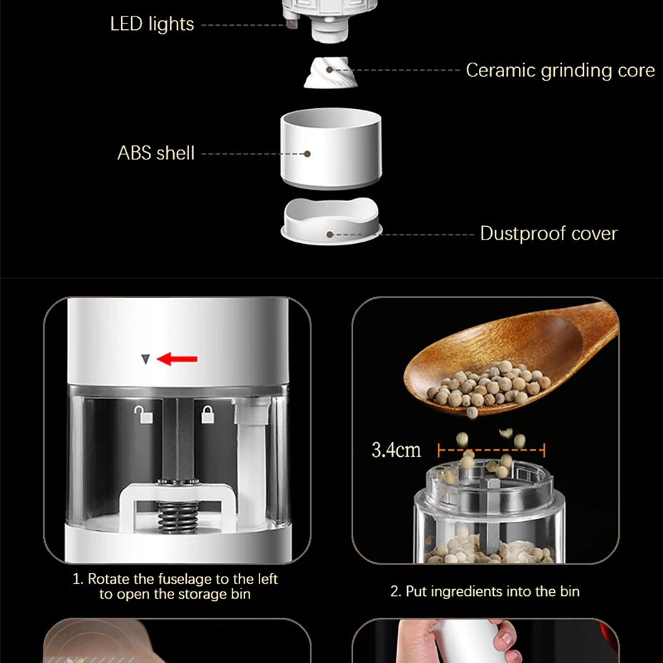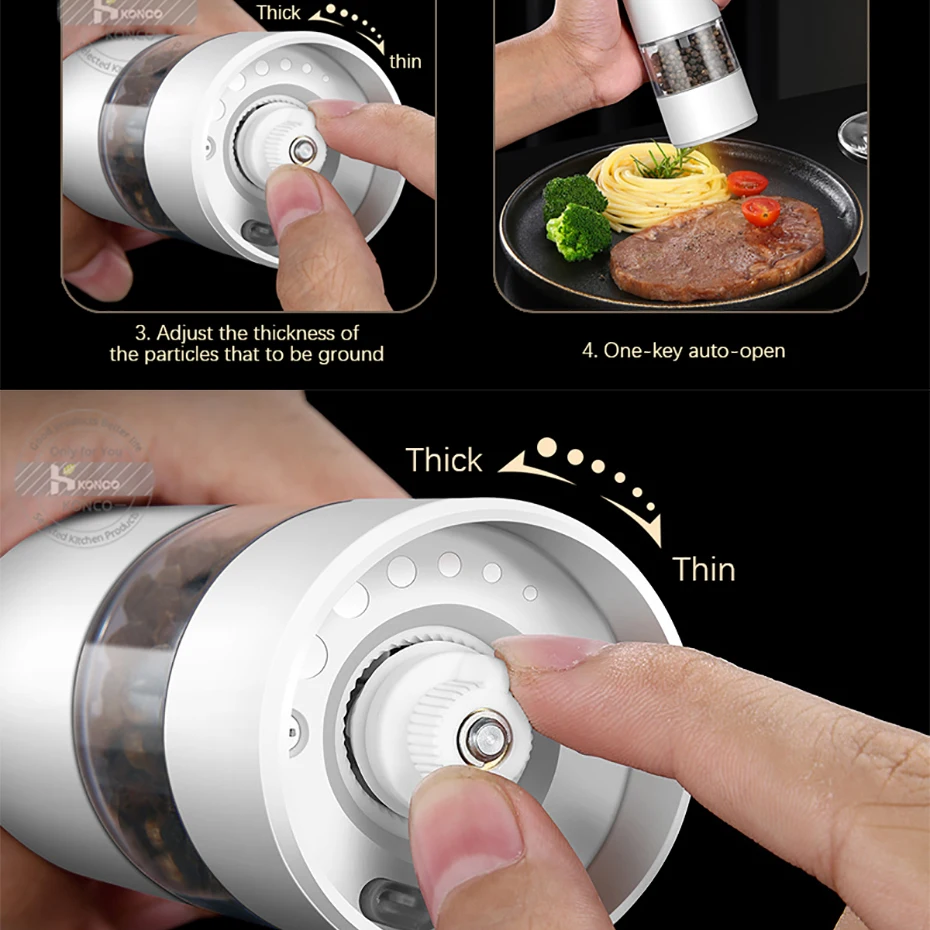 1. 【Pełna Applicability】This elektryczny sól i młynek do pieprzu młynek do łatwo miele sól morska, czarny pieprz, biały pieprz i inne przyprawy. Elektryczne młynki do pieprzu są koniecznością dla każdego domu, elegancki i elegancki wygląd nadaje się do wszystkich stołów obiadowych i blatów kuchennych