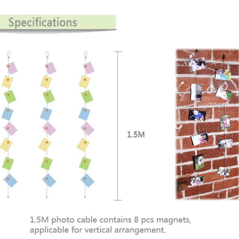 Sposób użycia:Użyj przycisków magnetycznych do mocowania zdjęć na kablu