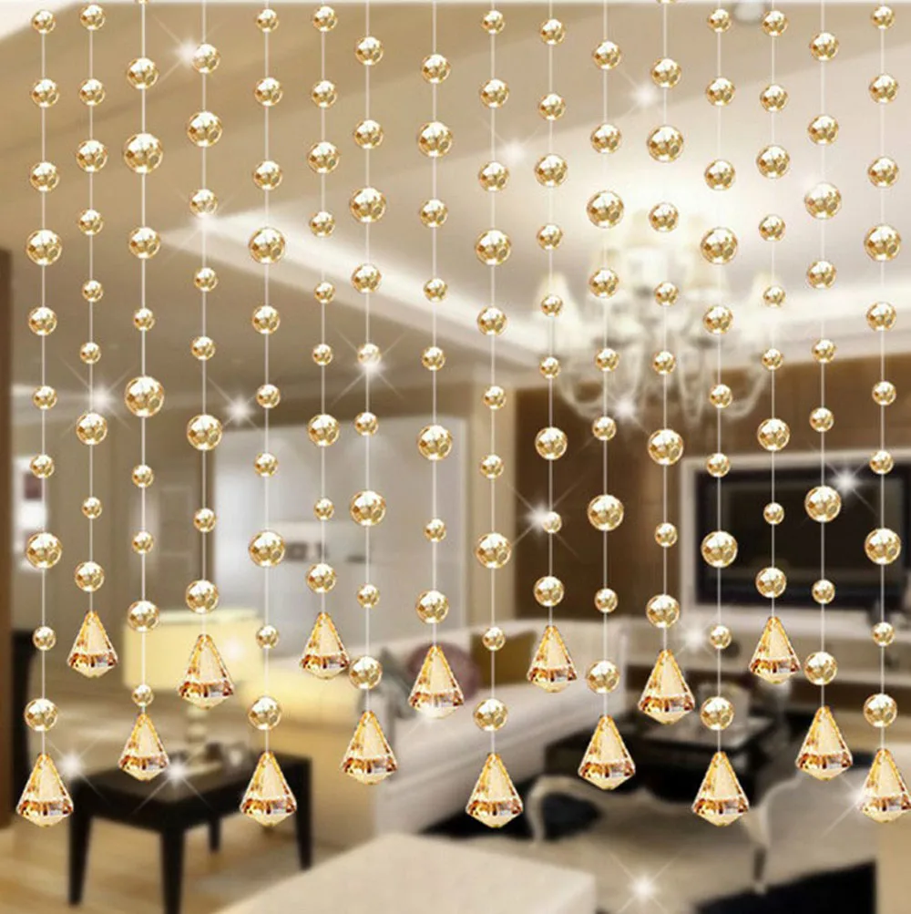 - 1xLuksusowe szklane koraliki drzwi ciąg zasłona z frędzlami Panel rozdzielacza ślubu wystrój pokoju (nie obejmuje wisiorek)