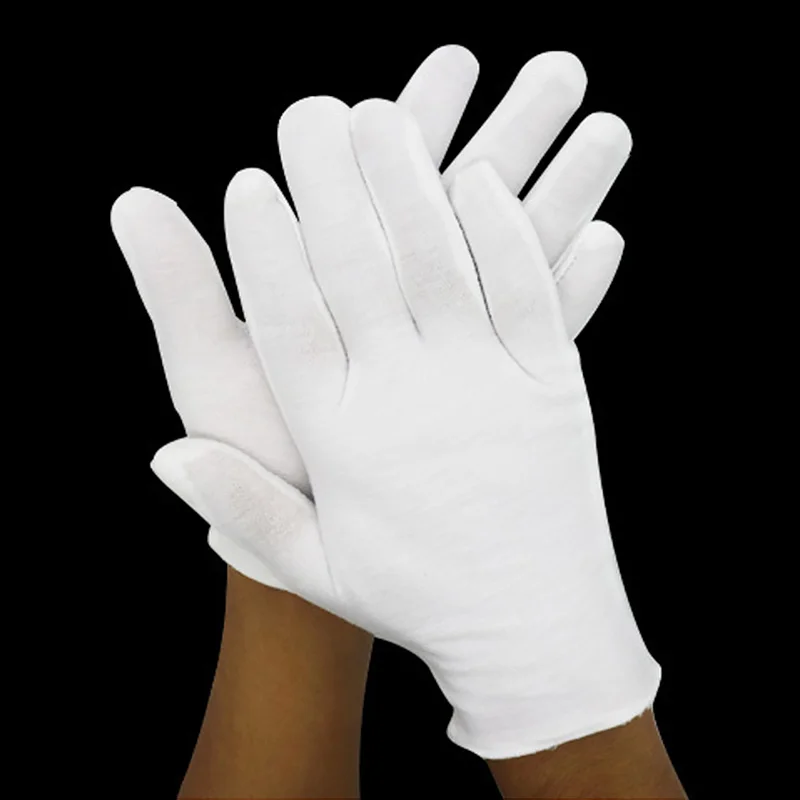 Opis: 1 para białe bawełniane rękawiczki pełny palec mężczyźni kobiety kelnerzy/kierowcy/biżuteria/pracownicy rękawice pochłaniające pot rękawice ręce Protector