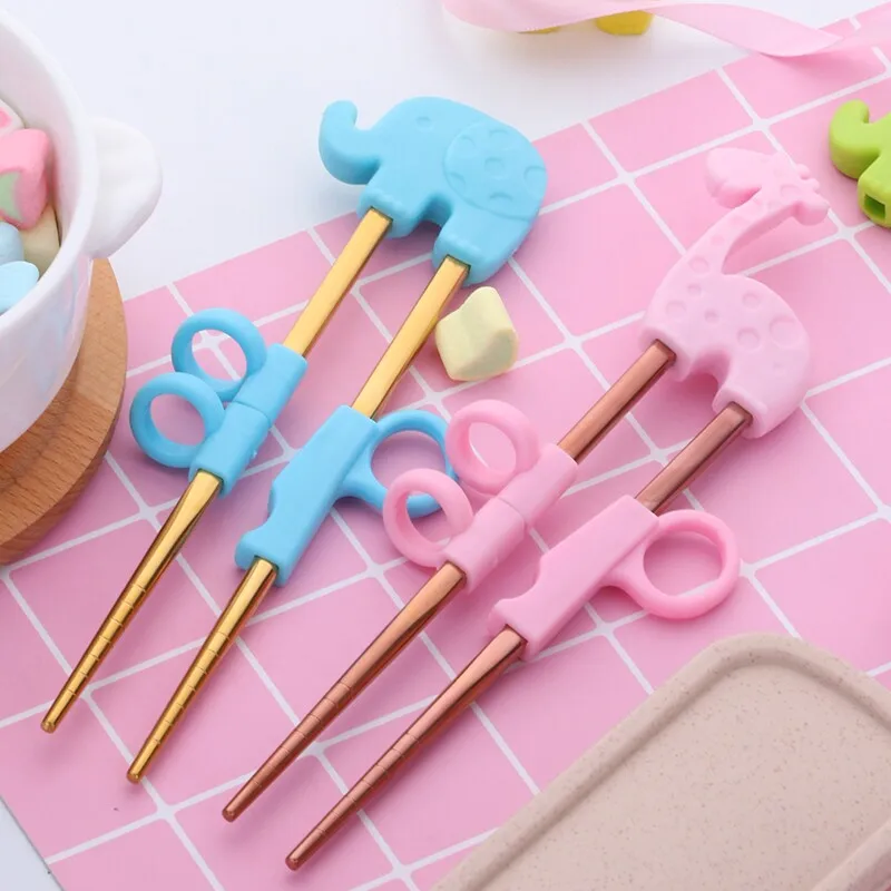 1 para pałeczki ze stali nierdzewnej dla dzieci Cartoon nauka pałeczki do jedzenia wielokrotnego użytku pałeczki treningowe śliczny zestaw stołowy dla dzieci