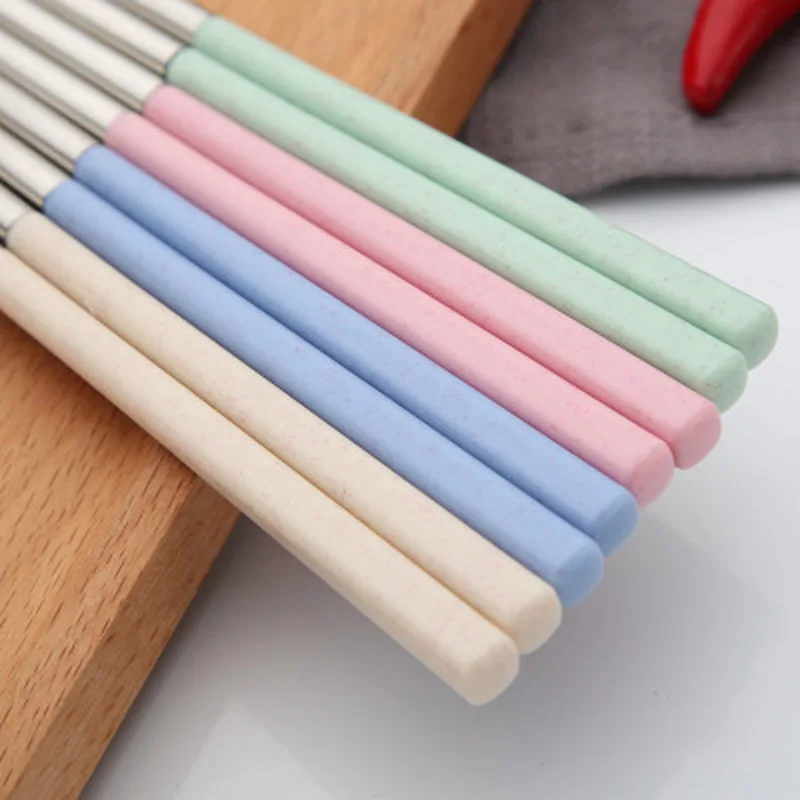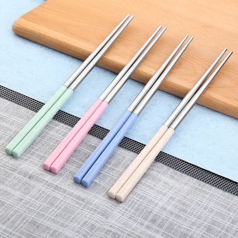 Pałeczki ze stali nierdzewnej chiński Metal pałeczki przenośne podróży Chopstick wielokrotnego użytku Sushi jedzenie pałeczki stołowe