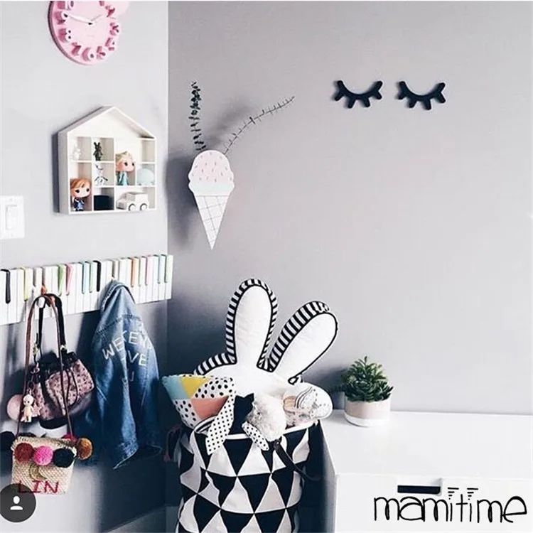 Nazwa: 1 para styl skandynawski śliczne drewniane 3D rzęsy naklejka do wystroju dzieci dzieci pokój dziecięcy naklejka ścienna w tle Home Decoration