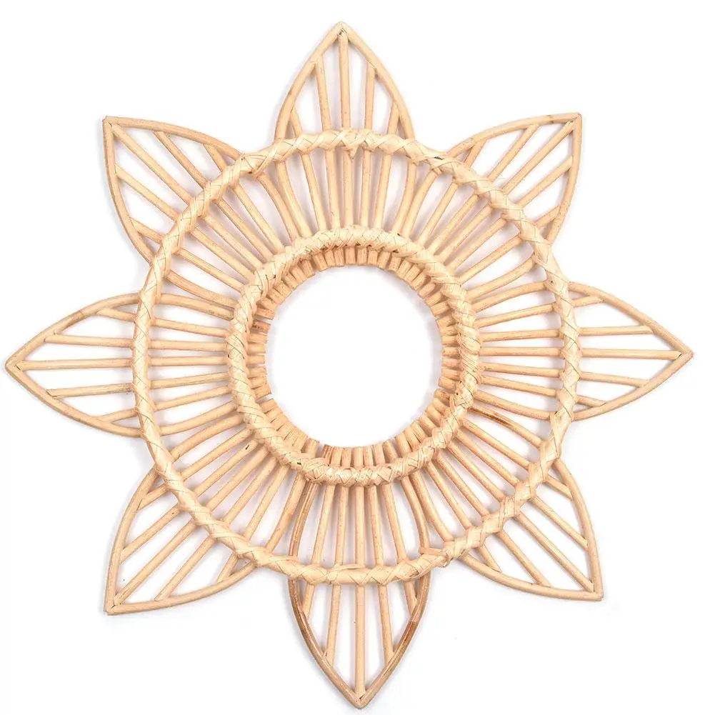 1 Pc rattanowe rzemiosło ramka w kwiaty kreatywne zdjęcie ścienne wiszące dekoracyjna rama ręcznie tkane rattanowe lustra materiały dekoracyjne do domu