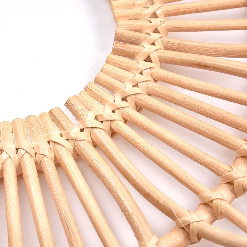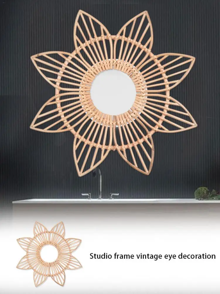 1, Design: ręcznie tkane lustra rattanowe mogą być używane do tworzenia ścian tematycznych do każdego pomieszczenia lub w połączeniu z innymi lustrami
