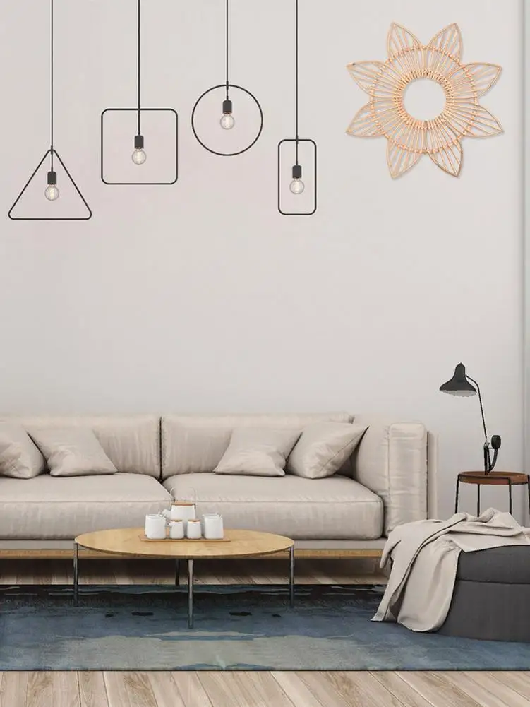 3, materiał: dostosować do obecnego trendu, przy użyciu naturalnych materiałów, rysunków geometrycznych, retro inspiracji i neutralny kolor rattanu, bez smaku, mocne, niełatwe do uszkodzenia