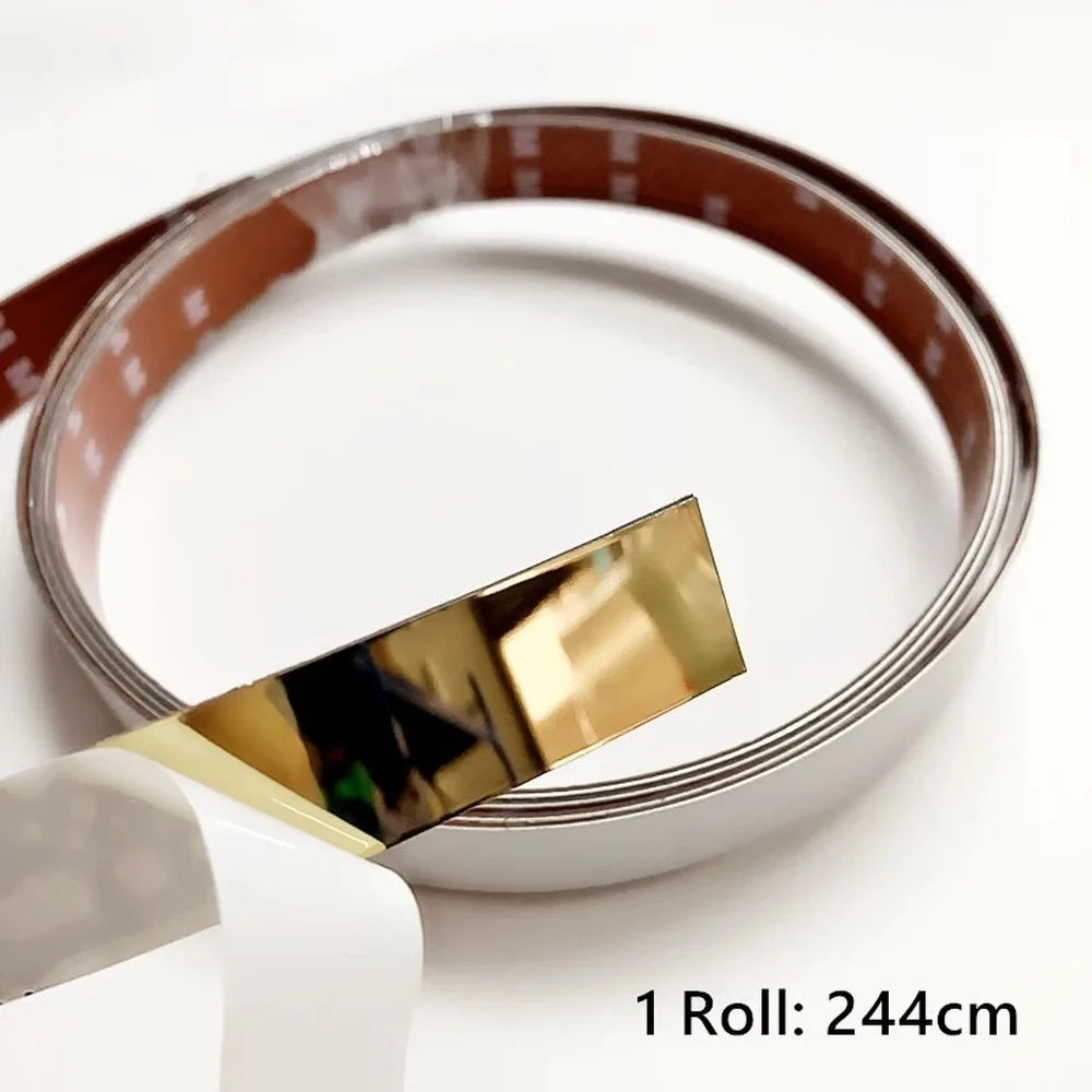 1, pasek dekoracyjny ze stali nierdzewnej, powierzchnia jest jak lustro, z samoprzylepnym, może być zainstalowany po oderwaniu