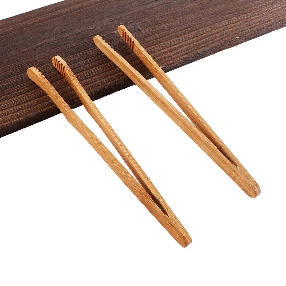1 szt. Drewniana łyżeczka do herbaty klip naturalny bambus pincety kuchnia sałatka jedzenie tosty Tong do gotowania chleb tostowy ogórki herbata