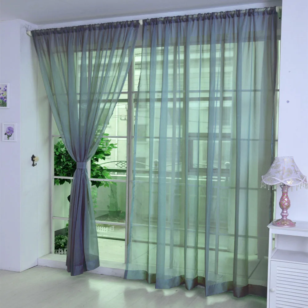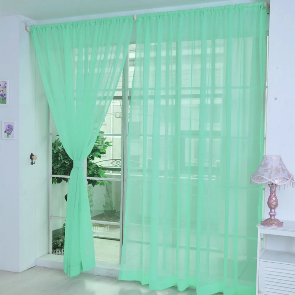 1 sztuk Pure Color Tulle zasłona drzwi zasłona Panel przezroczysty szal Valances