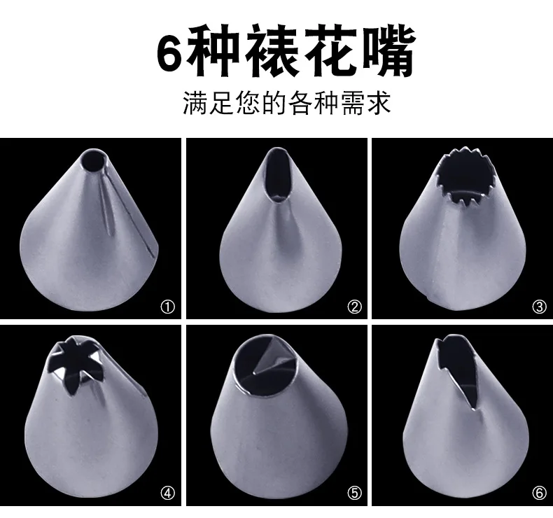 1 szt. Silikonowe akcesoria kuchenne oblodzenie rurociągi rękaw cukierniczy do kremu z 6 dyszami ze stali nierdzewnej końcówki do dekorowania ciastek