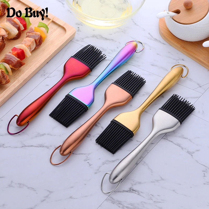 1 szt. Szczotki do olejowania ze stali nierdzewnej silikonowe do kuchni na grilla grillowanie pieczenie szczotki narzędzia do grillowania