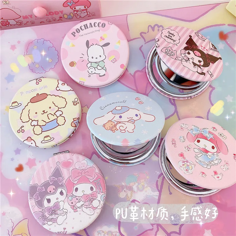 1 sztuk Cute Cartoon przenośne podwójne lustro boczne składane kieszonkowe lusterko do makijażu kobiety dziewczyny uroda kosmetyczne kompaktowe lustro