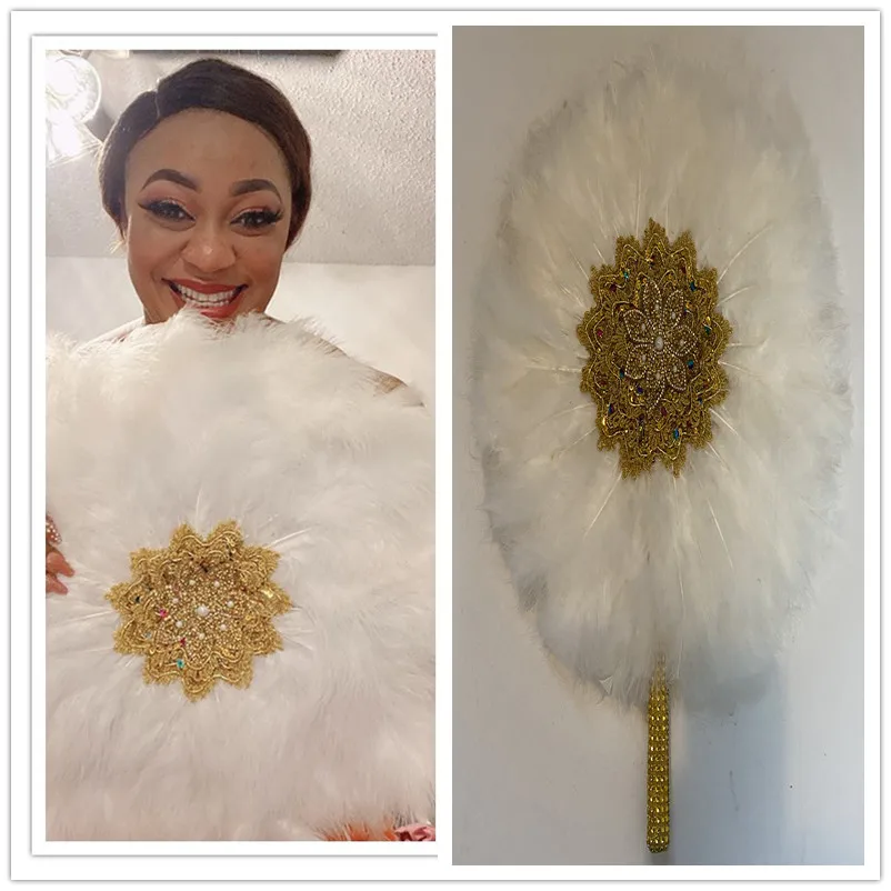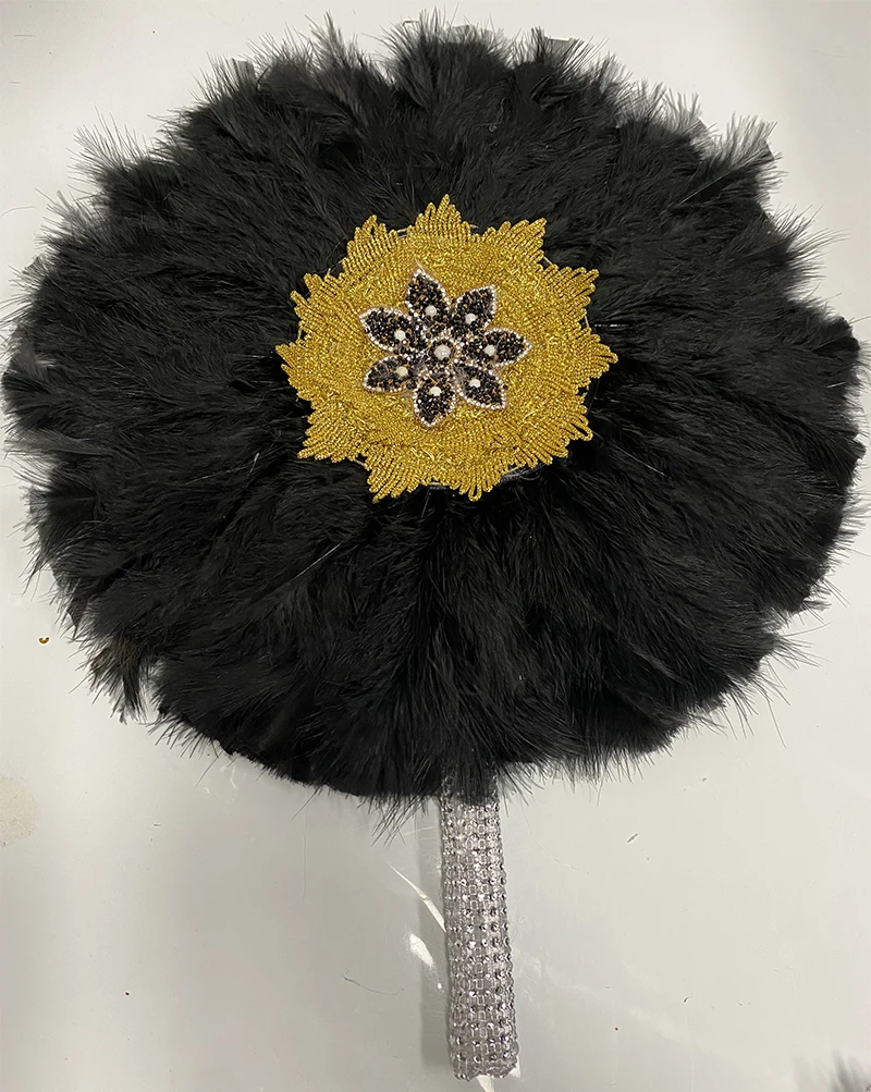 1 sztuk dwustronnie afryki turcja pióro wentylator ręczny pióra Handfan do tańca dekoracje ślubne wentylator z kamieniami czarny wentylator