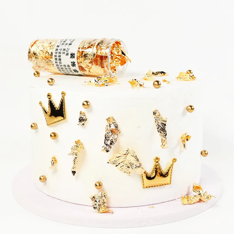 Dekoracja ciasta złotej folii. Jadalne, nie krępuj się jeść.