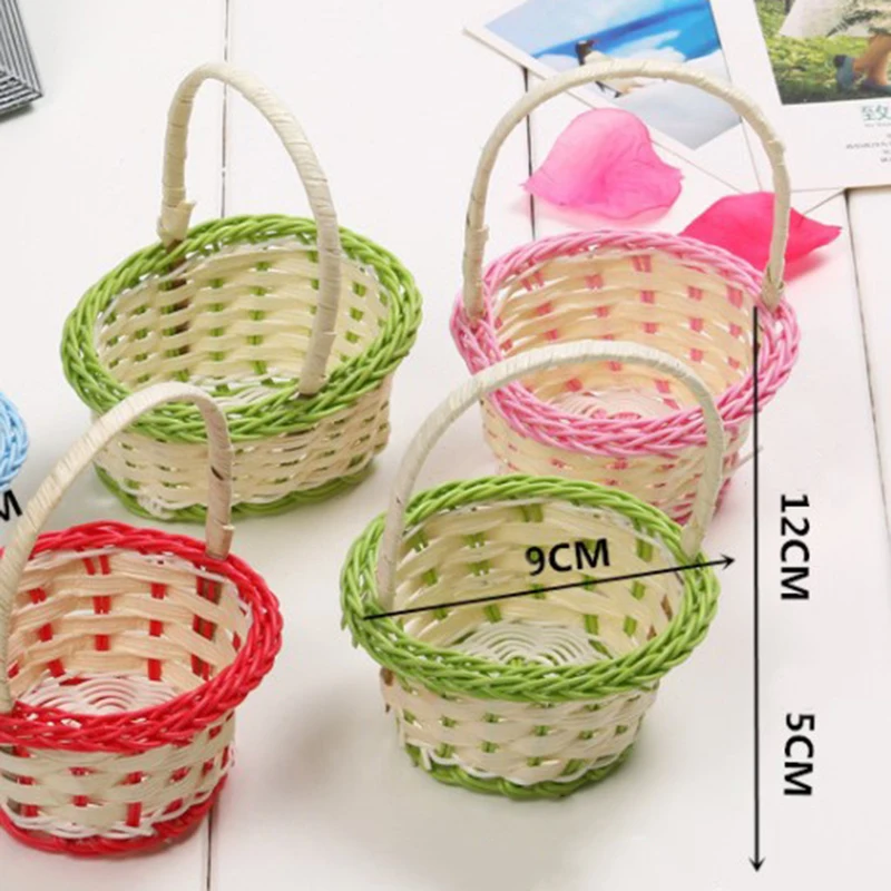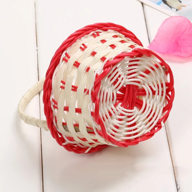 1pc Mini ręcznie tkane kosze do przechowywania plastikowe tkactwo kosze do przechowywania tkaniny