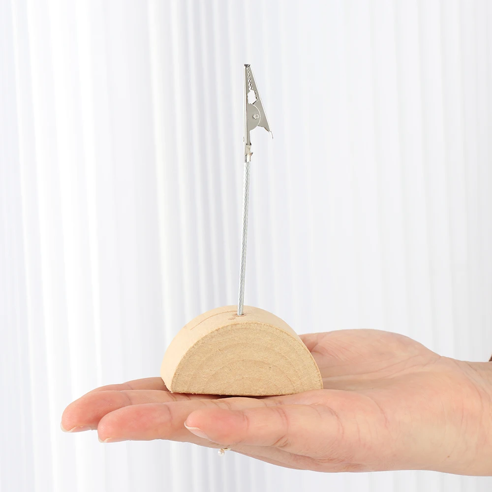 1 szt. Półokrągły uchwyt na karty drewniane klips do zdjęć ramka na zdjęcia stojak naturalny kikut dekoracje ślubne zaopatrzenie firm
