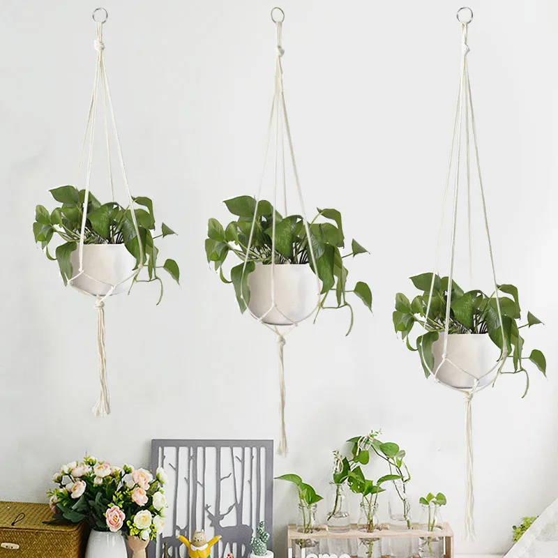 3. Łatwy do zawieszenia w każdej przestrzeni-wieszaki nadają się do użytku wewnątrz i użycie na zewnątrz. Wystarczy rozwinąć struny 4 nogi, umieścić donica na rośliny w środku połączenia. Świetnie nadaje się do wystroju domu boho, aby twoje życie stało się wyjątkowe. Wisząca roślinka może być używana do salonu, kuchni, przedpokoju, patio, wysokiego i niskiego sufitu.