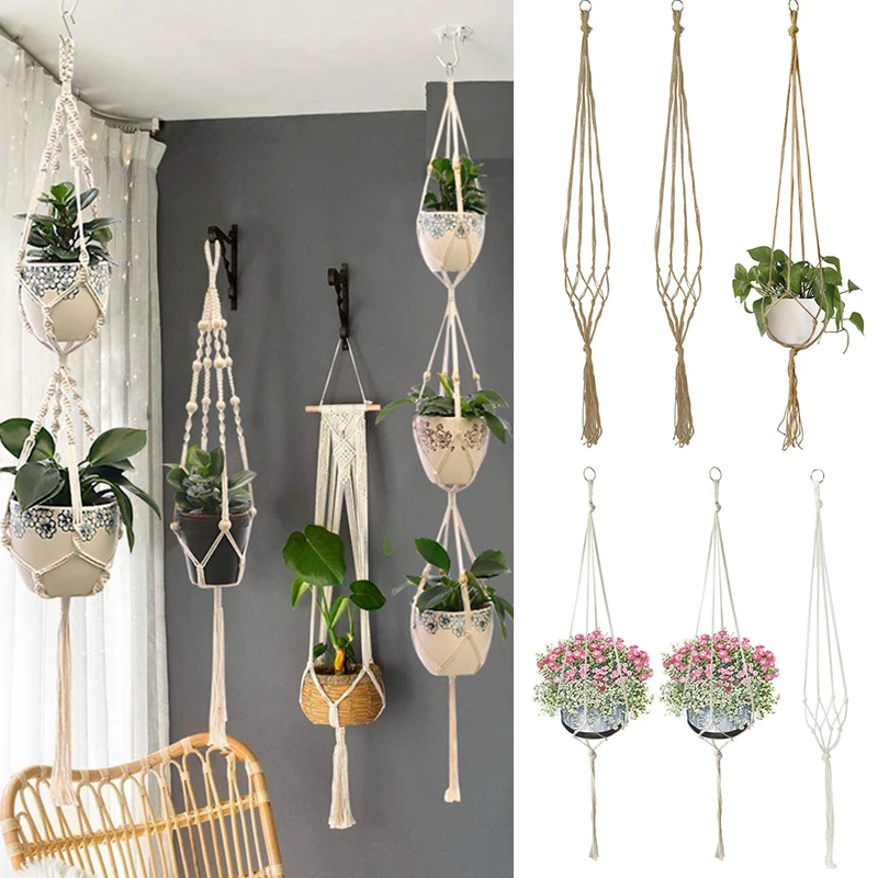 1 sztuk ręcznie zrobiony kwiatek/Pot wiszące kosze Macrame wieszak na rośliny uchwyt na doniczkę netto do dekoracji ścian Countyard narzędzia ogrodowe