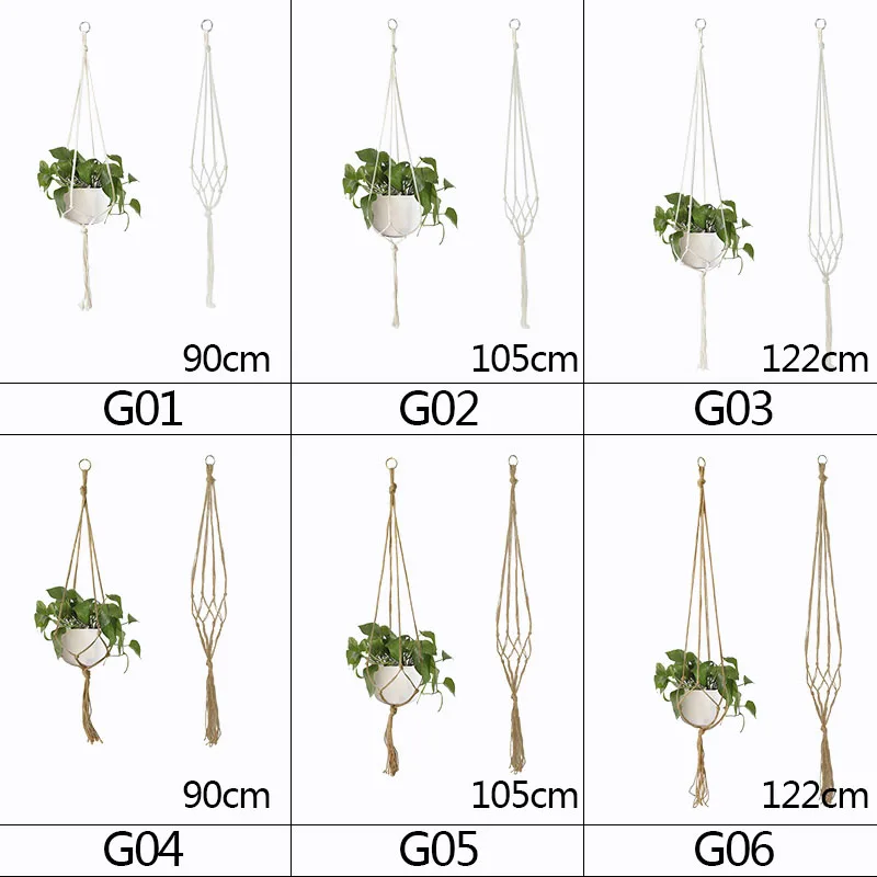 2. Charakterystyczne rzemiosło-ręcznie robione przez naszych utalentowanych rzemieślników, ten pojemnik na rośliny wykonany jest w 100% z czystego sznurek bawełniany. Stojak wisząca roślinka ma mocny, elastyczny tkany wzór, który może pomieścić różne kształty i rozmiary sadzarek.