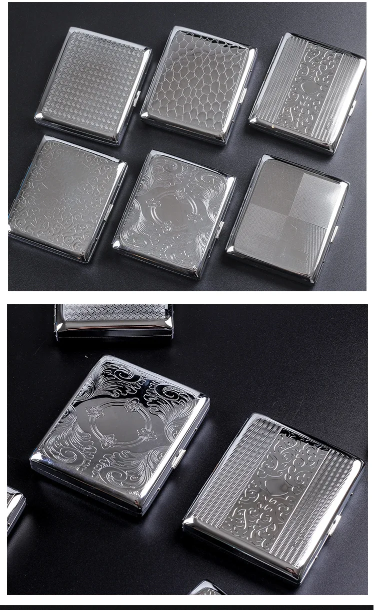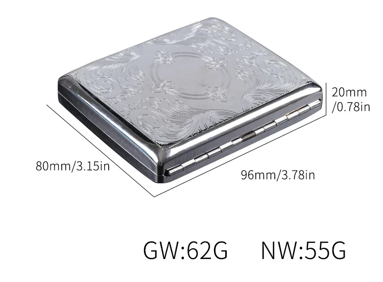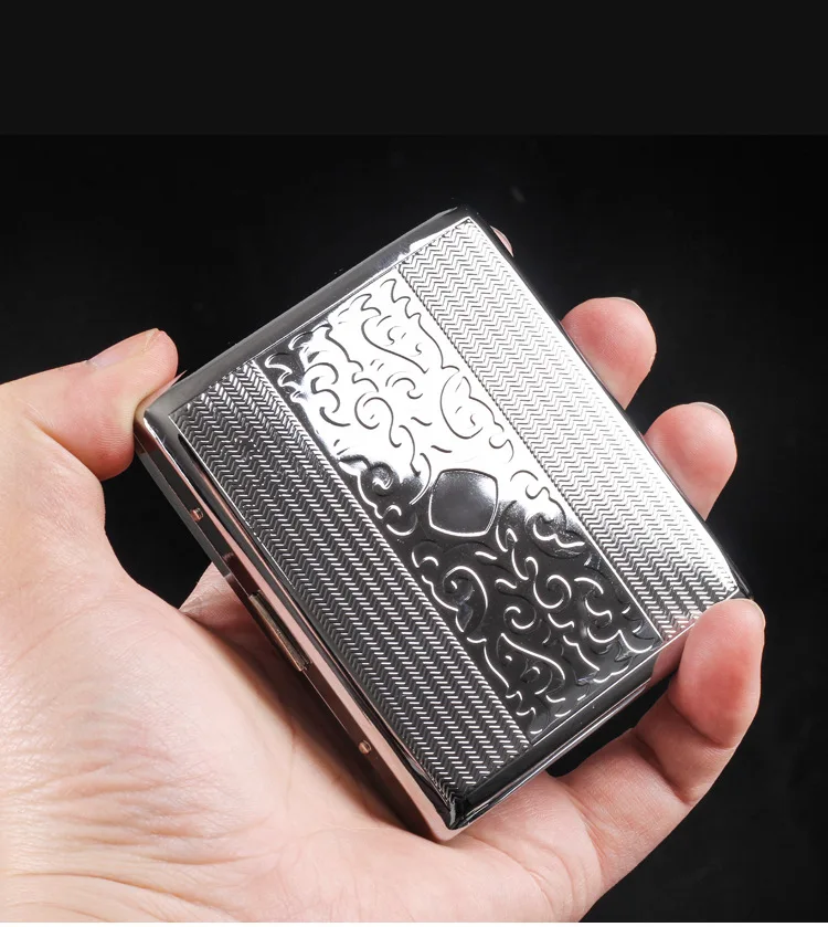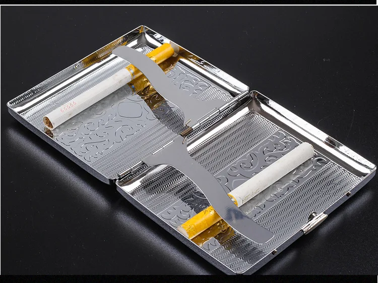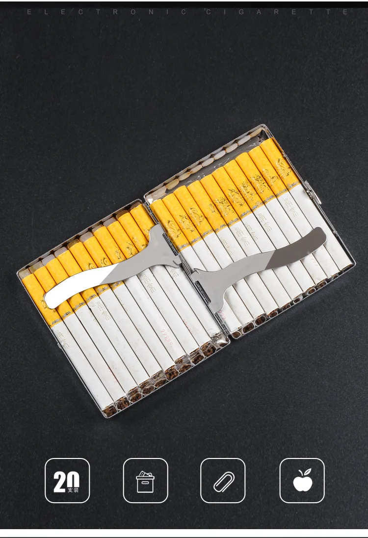 1 sztuk srebrny przenośny metalowa papierośnica na 20 papierosów odwróć otwórz przechowywanie papierosów uchwyt skrzynki podróży na zewnątrz narzędzia do palenia