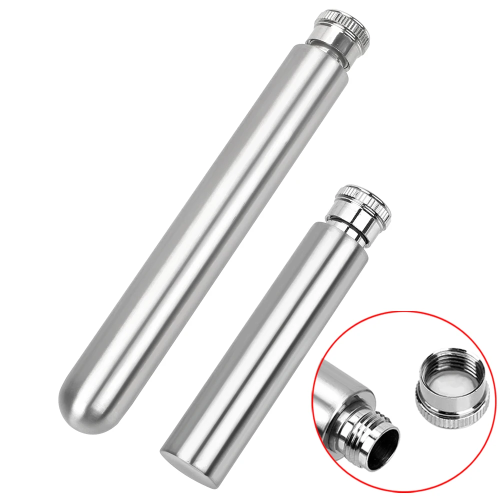 Kolba w kształcie cygara wykonana jest z ładnej stali nierdzewnej.