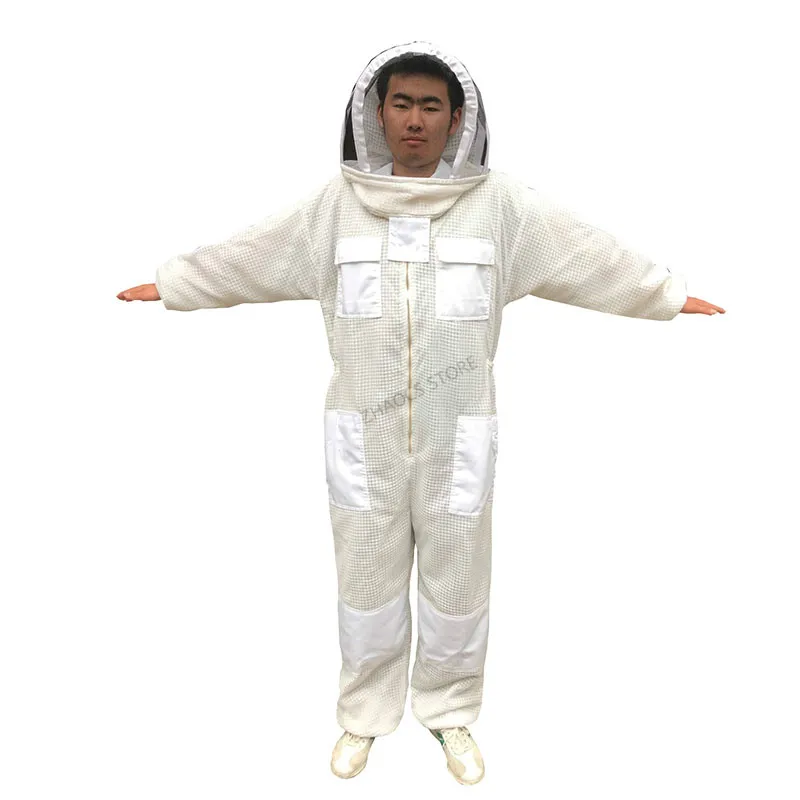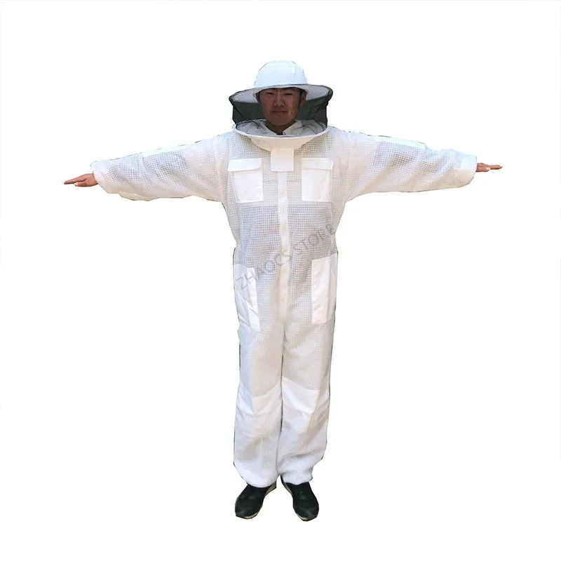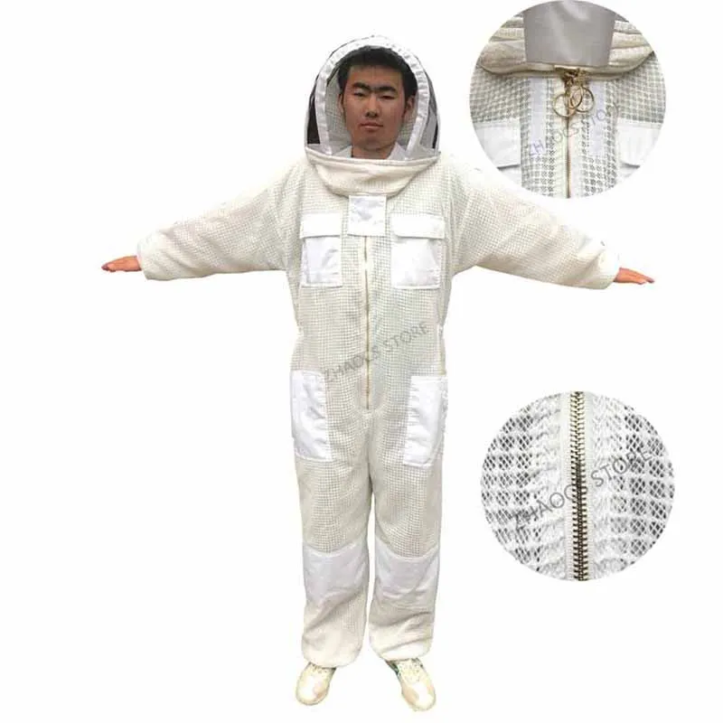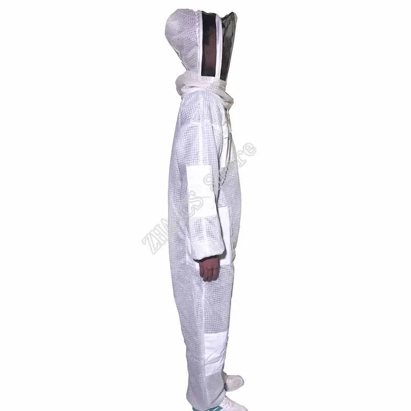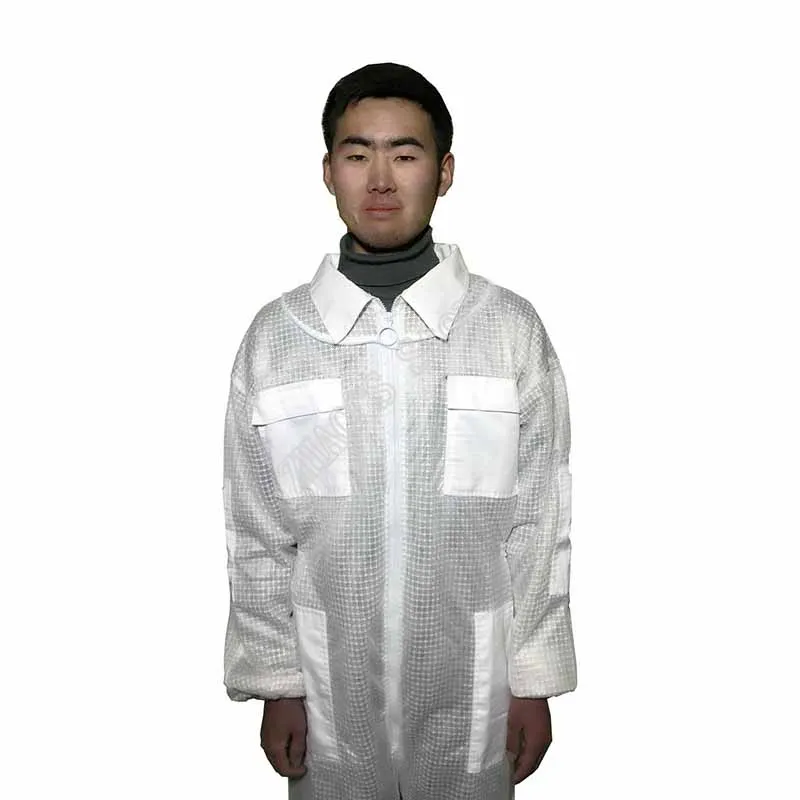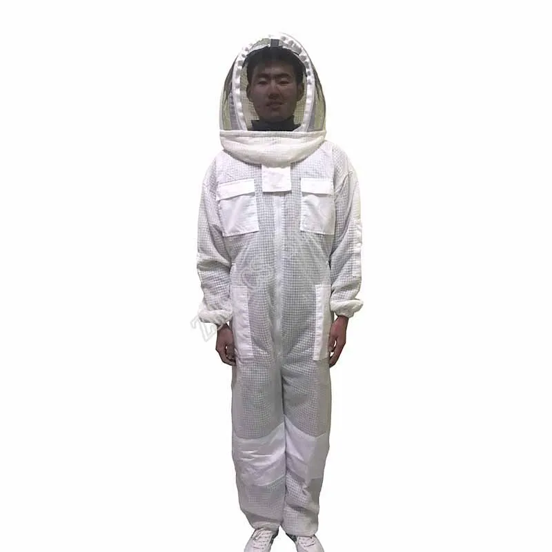 Możesz zobaczyć szczegółowy obraz tej sukienki. Wykonany jest z trójwarstwowej tkanina z siateczki. Widać, że jest na nim wiele oczek, nie jest wcale gorąco, aby założyć tę sukienkę, ponieważ z trzema warstwami tkanina z siateczki, istnieje wiele otwory przepuszczające powietrze, A przepuszczające powietrze jest 10 razy większe niż w przypadku zwykłych ubrań odpornych na pszczoły, które są używane do wentylacji. Materiał tej sukienki jest wystarczający, dodaliśmy warstwę bardzo mocnego łańcuch siatkowy w środku, prawie 1.6kg, dwa razy większą niż w przypadku zwykłych ubrań roboczych. Ta sukienka jest bardzo ukształtowana, super oddychająca i odporna na zużycie. Spodoba ci się. Podobnie jak jego nazwa, klimatyzowane ubrania, nigdy nie poczujesz się ponury. Chińscy pszczelarze bardzo to lubią. Jest wiele zamówień. Więc nie musisz się martwić o jakość, po prostu zastanów się, kiedy mogę go założyć, aby wyprodukować miód? Sprzedajemy go na całym świecie, mając nadzieję pomóc pszczelarzom na całym świecie, aby mieć wygodne ubrania robocze i produkować słodki miód.