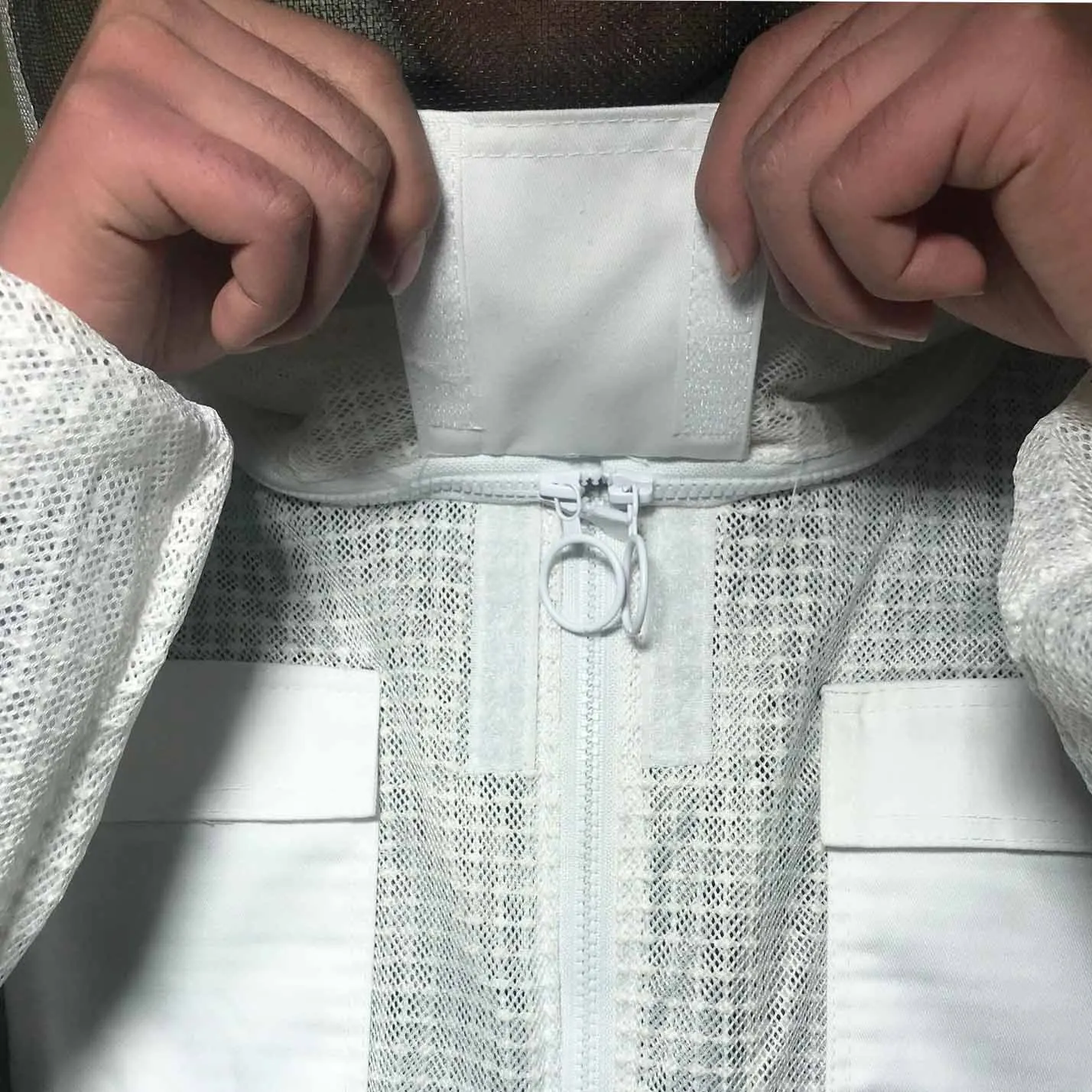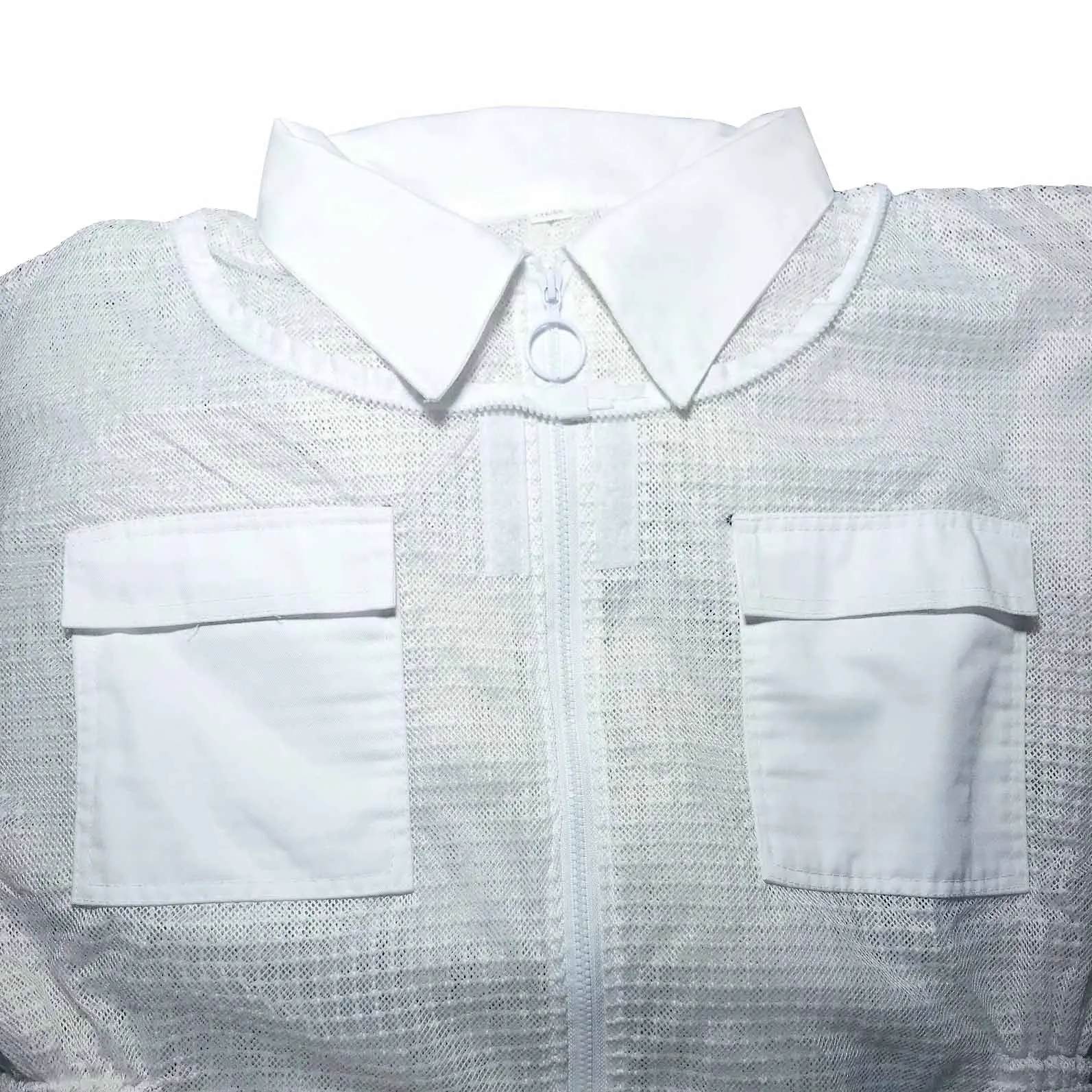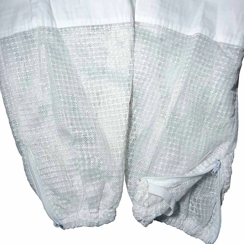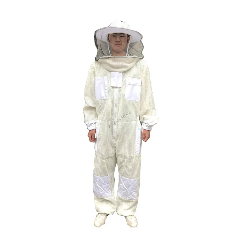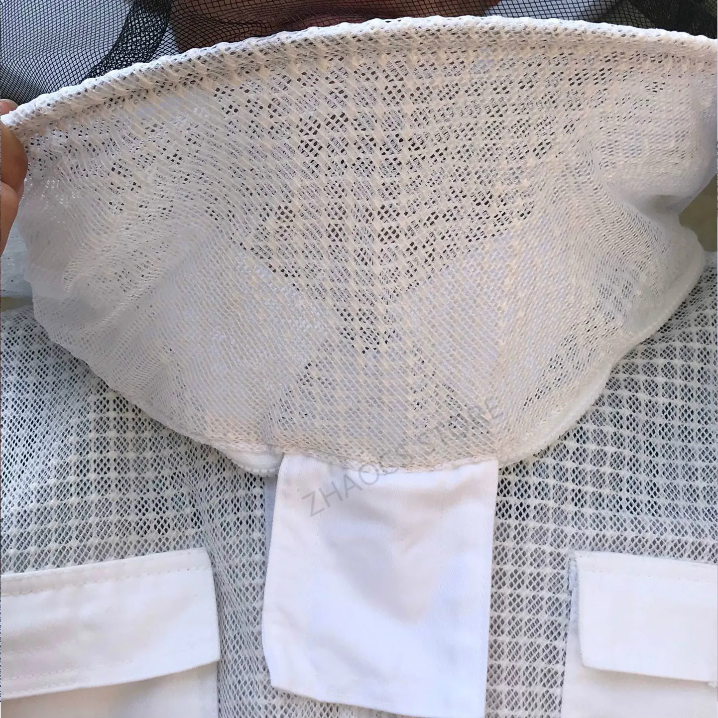 Możesz zobaczyć szczegółowy obraz tej sukienki. Wykonany jest z trójwarstwowej tkanina z siateczki. Widać, że jest na nim wiele oczek, nie jest wcale gorąco, aby założyć tę sukienkę, ponieważ z trzema warstwami tkanina z siateczki, istnieje wiele otwory przepuszczające powietrze, A przepuszczające powietrze jest 10 razy większe niż w przypadku zwykłych ubrań odpornych na pszczoły, które są używane do wentylacji. Materiał tej sukienki jest wystarczający, dodaliśmy warstwę bardzo mocnego łańcuch siatkowy w środku, prawie 1.6kg, dwa razy większą niż w przypadku zwykłych ubrań roboczych. Ta sukienka jest bardzo ukształtowana, super oddychająca i odporna na zużycie. Spodoba ci się. Podobnie jak jego nazwa, klimatyzowane ubrania, nigdy nie poczujesz się ponury. Chińscy pszczelarze bardzo to lubią. Jest wiele zamówień. Więc nie musisz się martwić o jakość, po prostu zastanów się, kiedy mogę go założyć, aby wyprodukować miód? Sprzedajemy go na całym świecie, mając nadzieję pomóc pszczelarzom na całym świecie, aby mieć wygodne ubrania robocze i produkować słodki miód.
