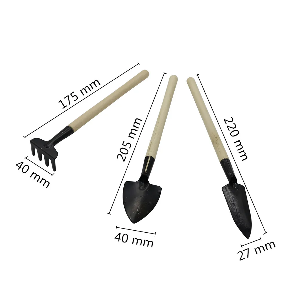 Wykonane z drewna i żelaza, trwałe, wygodne w chwytaniu. Mini narzędzia ogrodnicze są lekkie, co ułatwia obsługę.