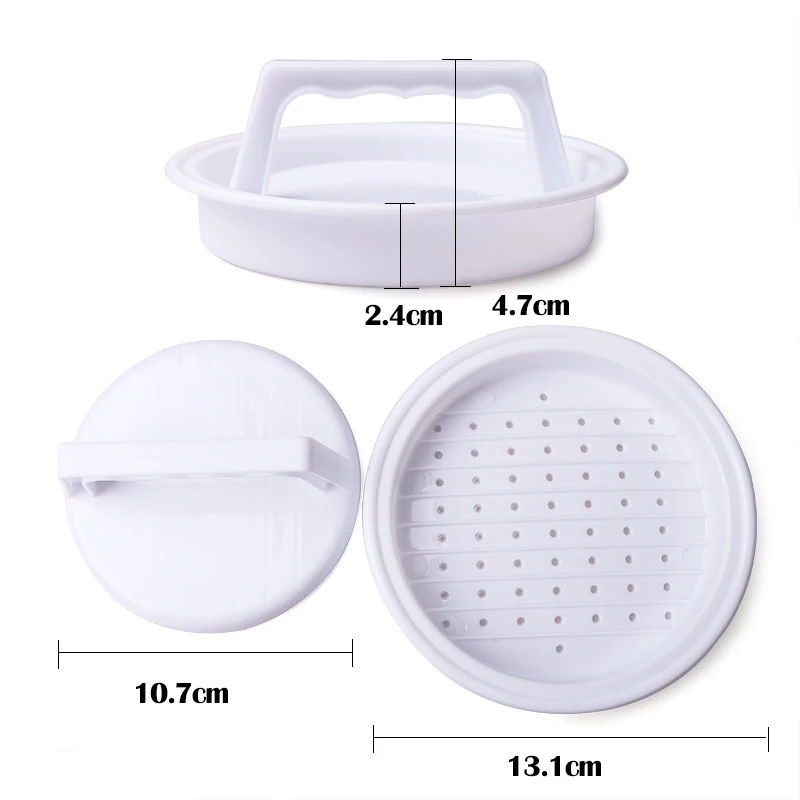 Narzędzia kuchenne 1 zestaw okrągły kształt szynka prasa do burgerów Food-Grade Plastic Hamburger mięso wołowe Grill prasa do burgerów foremka do mięsa forma