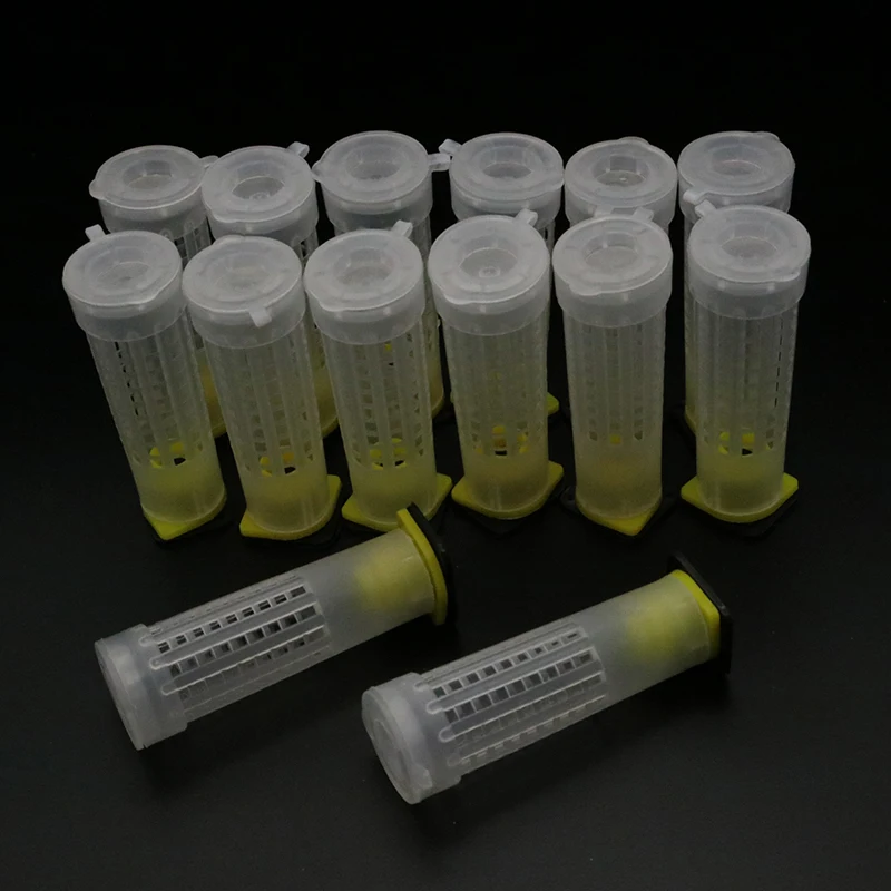 2. Następnie ograniczasz królową przed klatką, a ona natychmiast składa jaja w 110 dostępnych komórkach. Może zostać zwolniona następnego dnia. Czwartego dnia każda nowo wykluta larwa jest gotowa do przeniesienia.