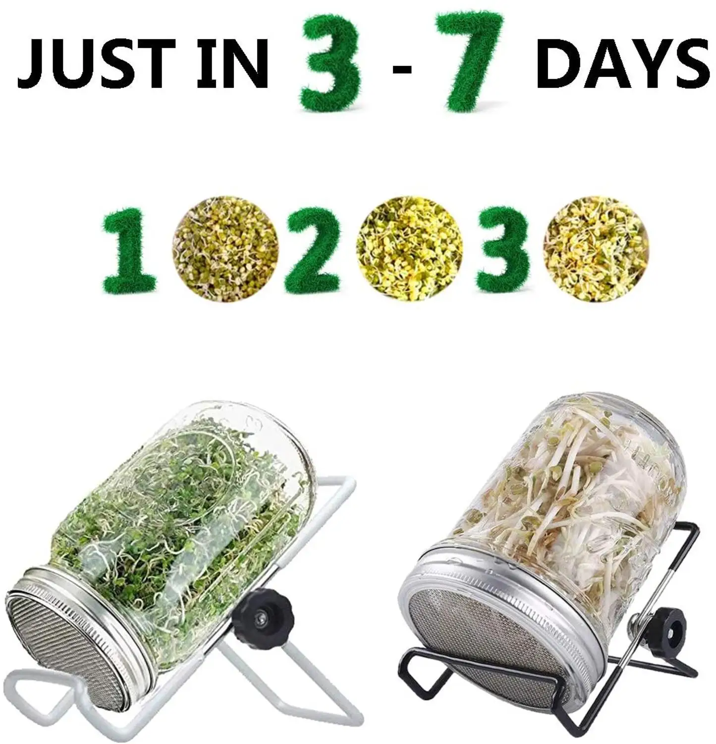Łatwy w użyciu-zacznij kiełkować nasiona już dziś! Wszystko, co musisz zrobić, to wybrać nasiona lub fasolę i dodać wodę. Dlaczego nie zacząć od organicznego brata lub brocolli? Nasiona wymagają początkowego moczenia przez 8-12 godzin, a następnie zwykle kiełkują 2-3 dni. To wymaga bardzo mało uwagi-trzeba tylko spłukać nasiona raz dziennie.