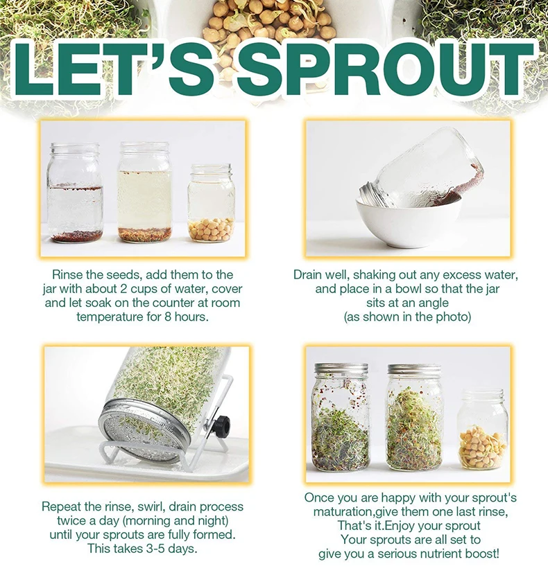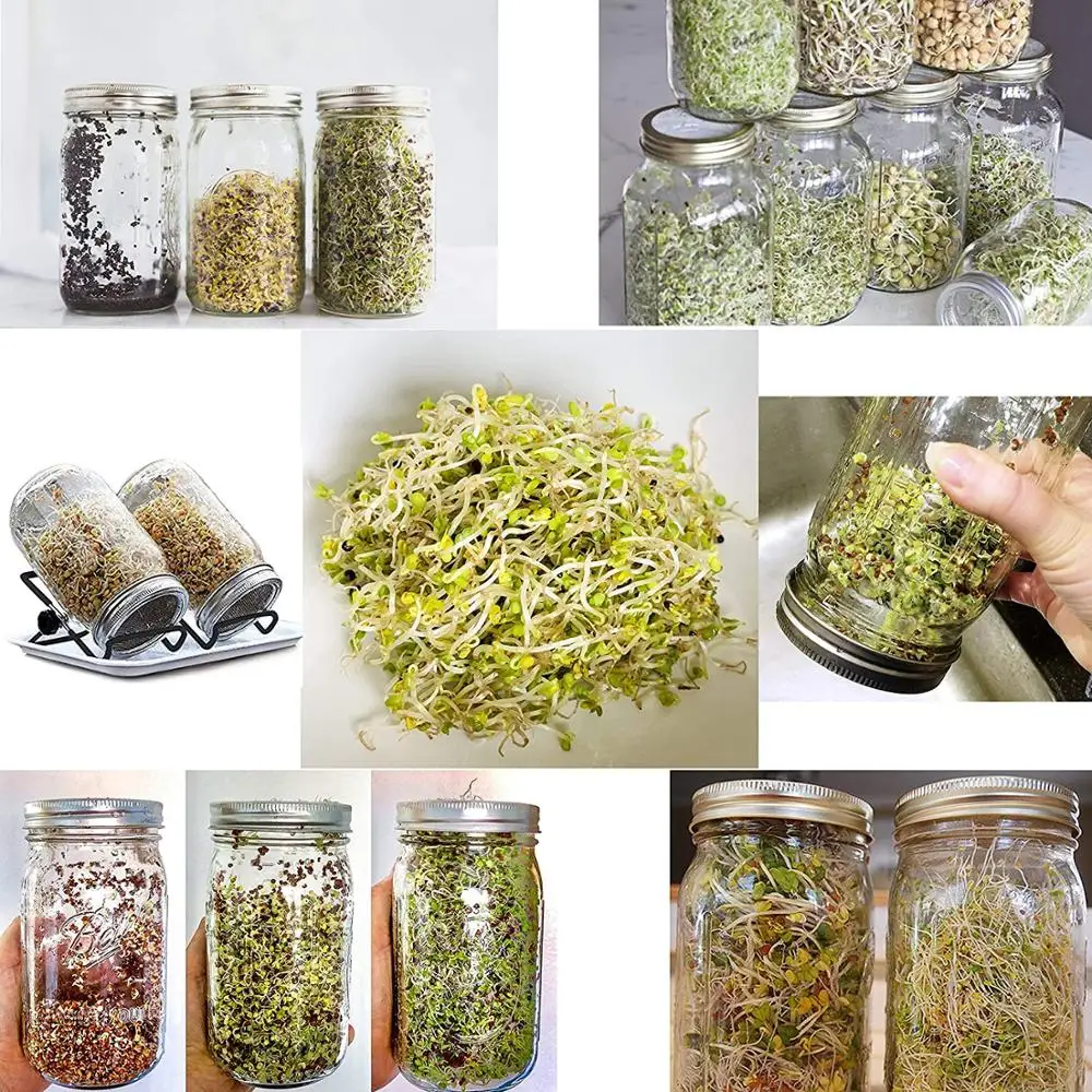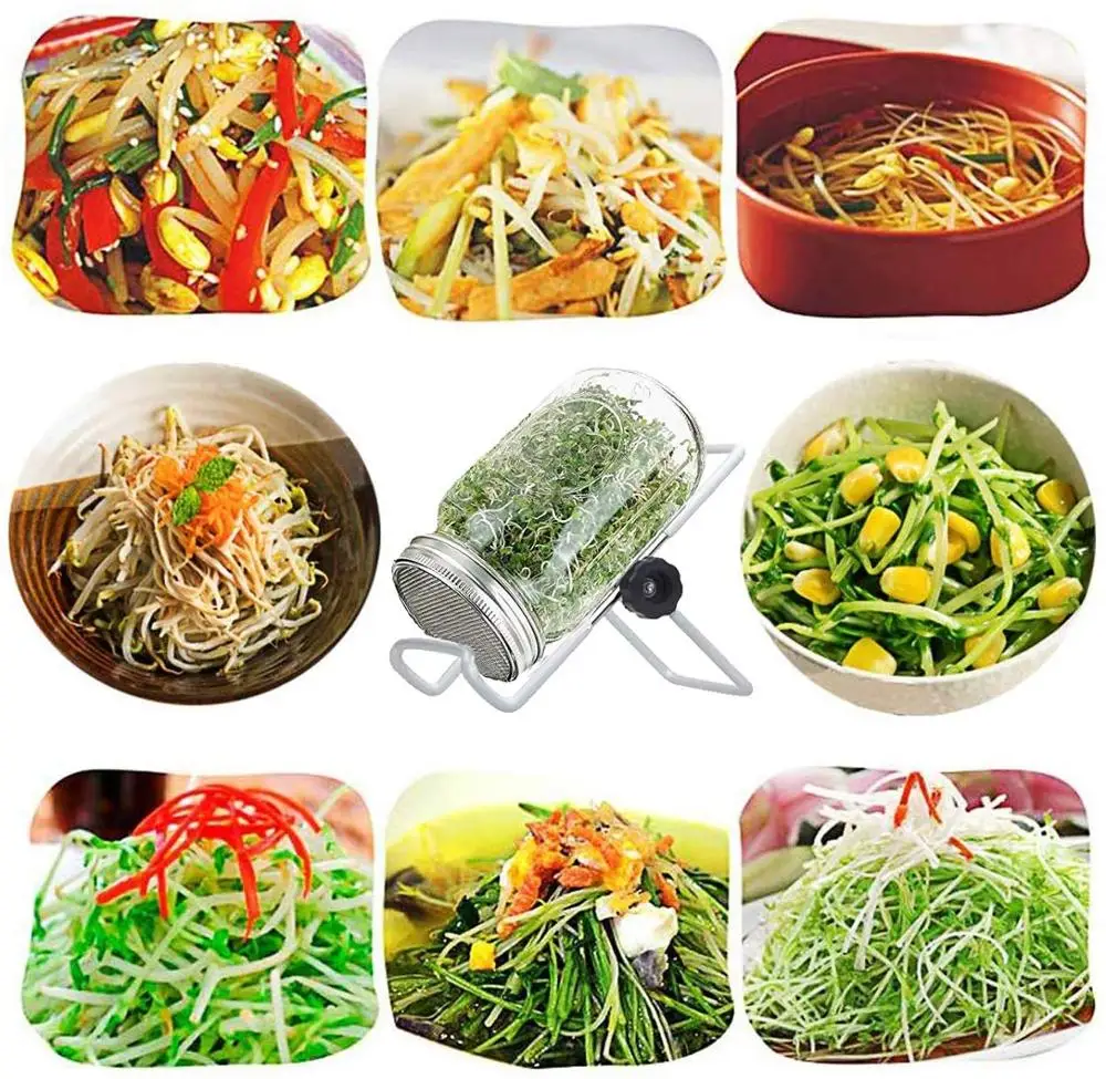 1 zestaw zestaw kiełkowania kiełkowania kiełkowania kiełkowanie słoiki do zapraw z durszlak ze stali nierdzewnej pokrywy stojaki kiełkujące ze stali nierdzewnej składany Sprouter