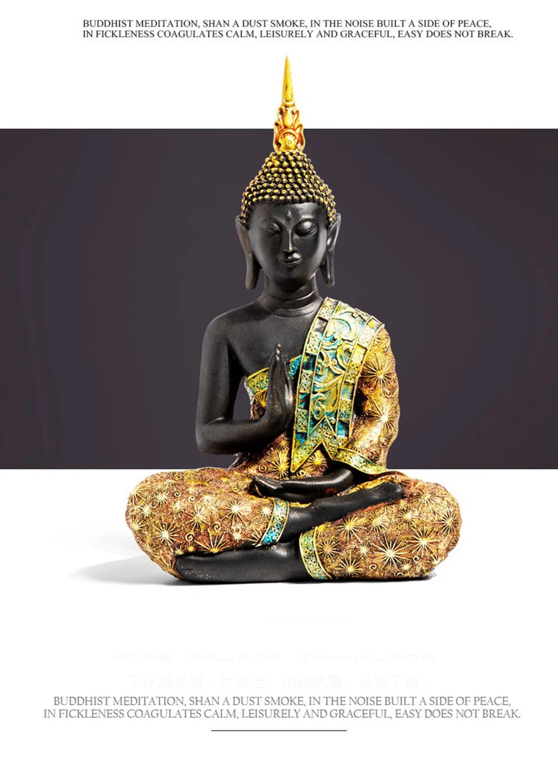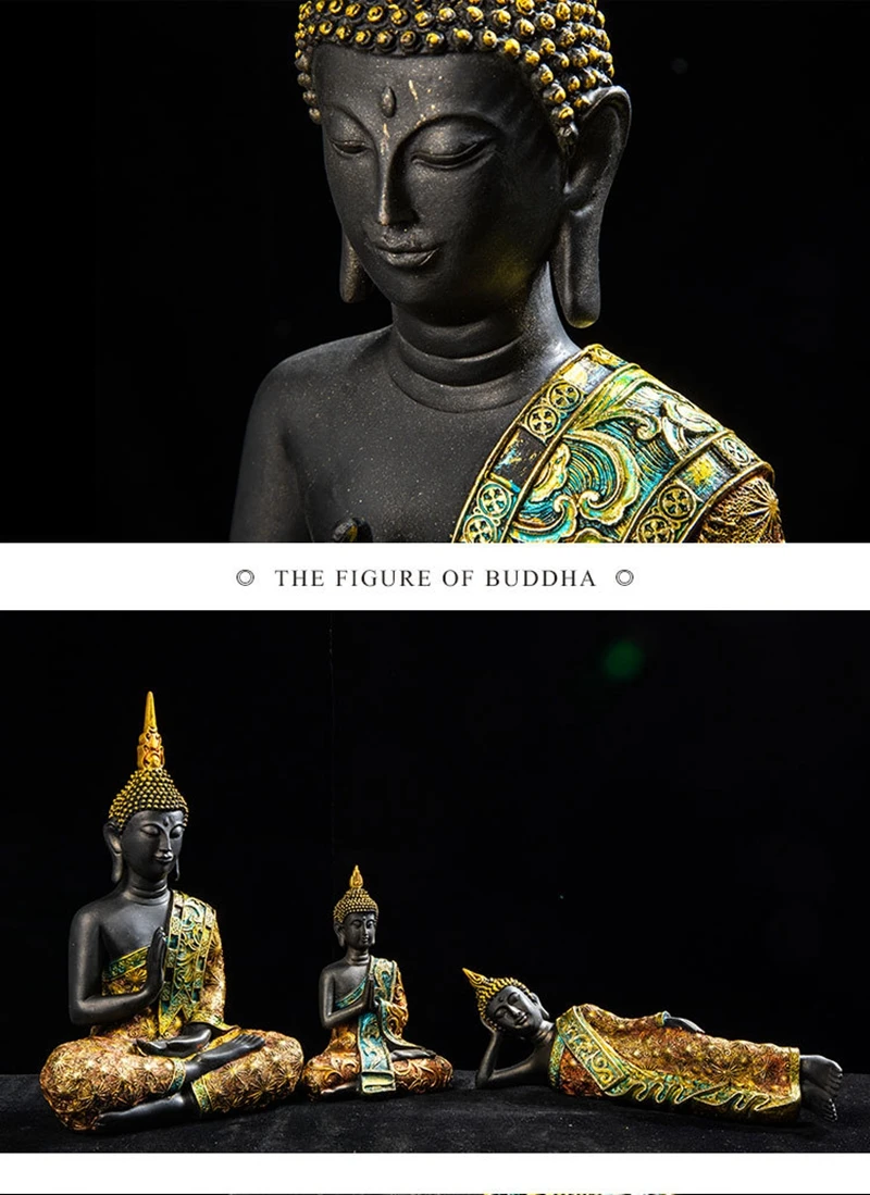 Posąg buddy tajlandia rzeźba buddy zielona żywica ręcznie robiony buddyzm hinduski Fengshui figurka medytacja Home Decor