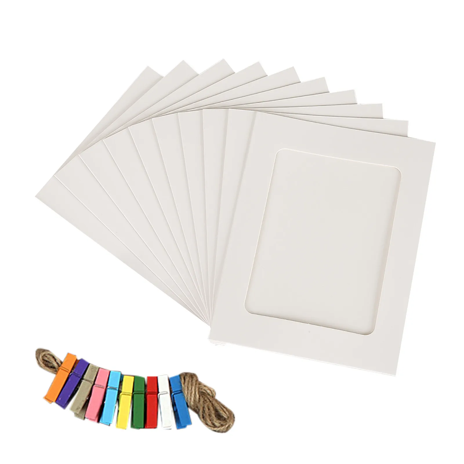 10 sztuk 3/4/5 Iches połączenie papierowa ramka z klipsami DIY Kraft papier ramka na zdjęcia wiszące na ścianie Album na zdjęcia 2M liny domowe rzemiosło
