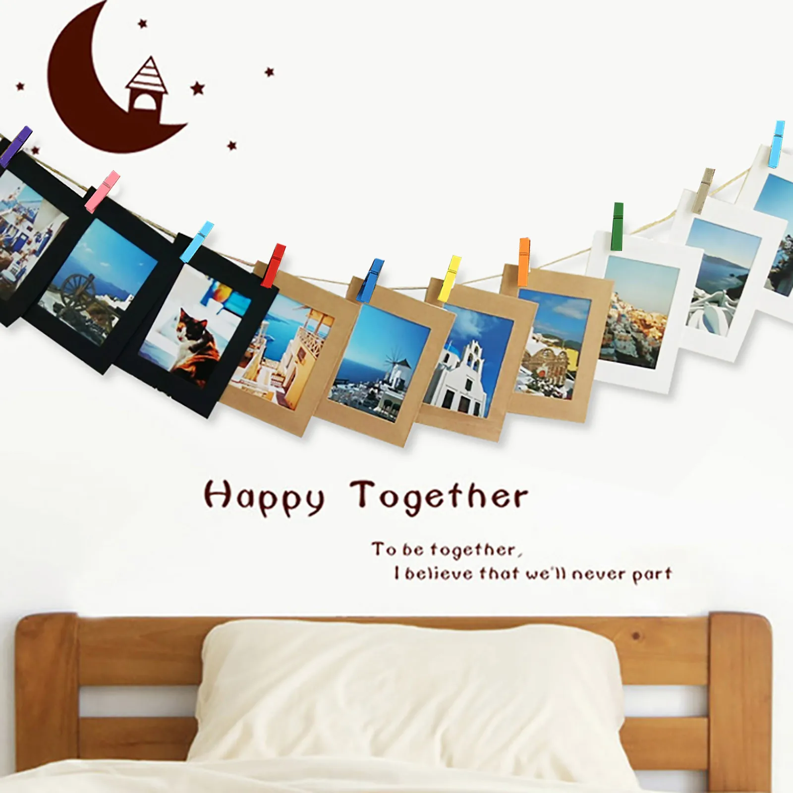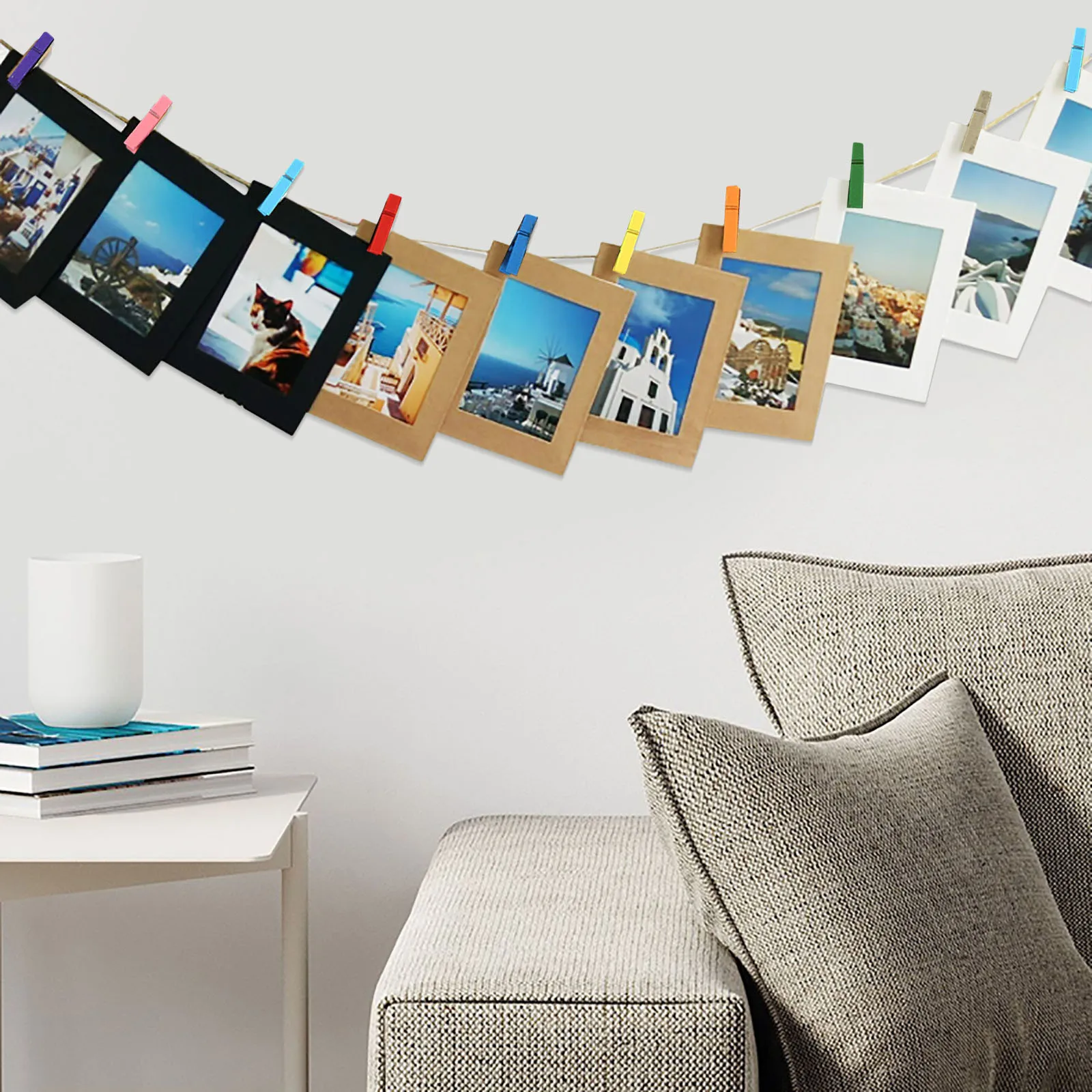 10 sztuk kolorowych naściennych ramek na papier fotograficzny z zaciski linowe.