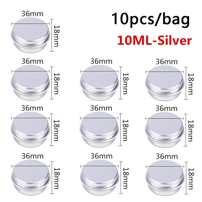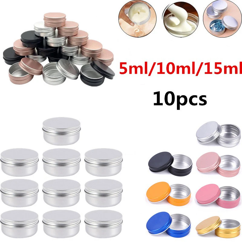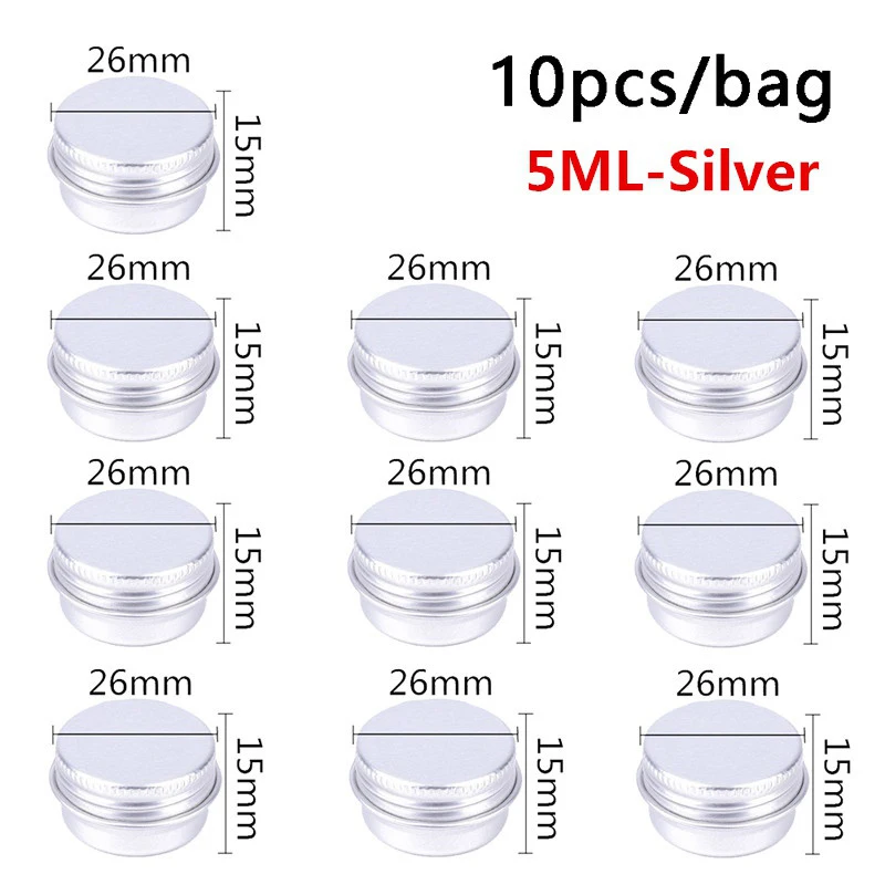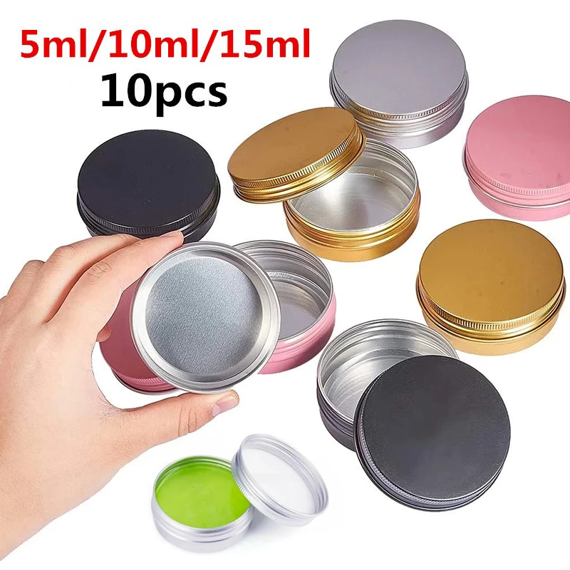 10 sztuk 5ML/10ML/15ML pusta aluminiowa zakrętka do słoika do pakowania krem balsam do paznokci świeca kosmetyczne okrągłe pojemnik do przechowywania Mini metalowe pudełko
