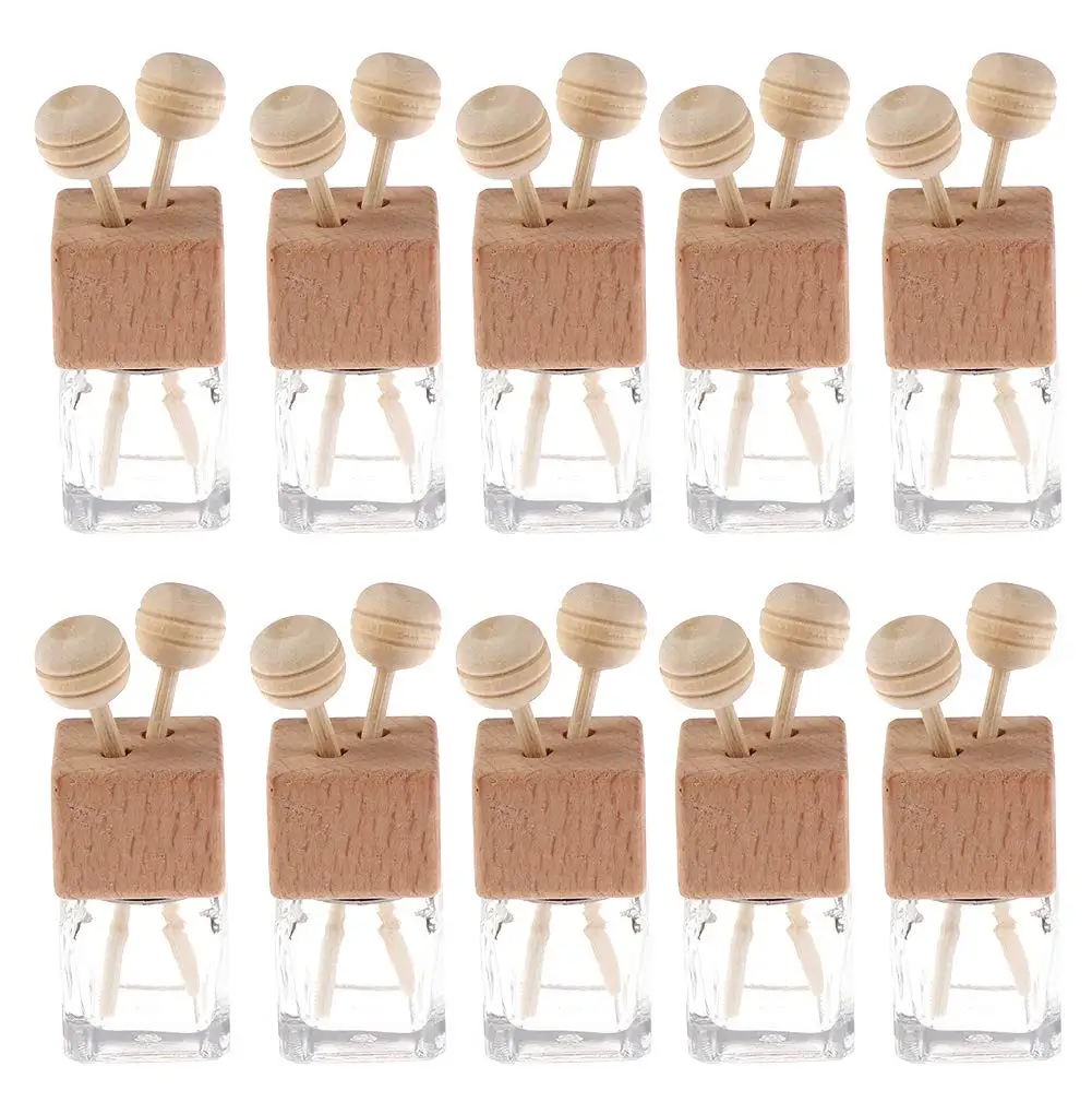 10 sztuk 8ml odświeżacz powietrza do samochodu klips do odświeżacza wylot wentylacyjny dyfuzor pusty olejek szklany perfumy fiolki Ornament z drewnianymi czapkami