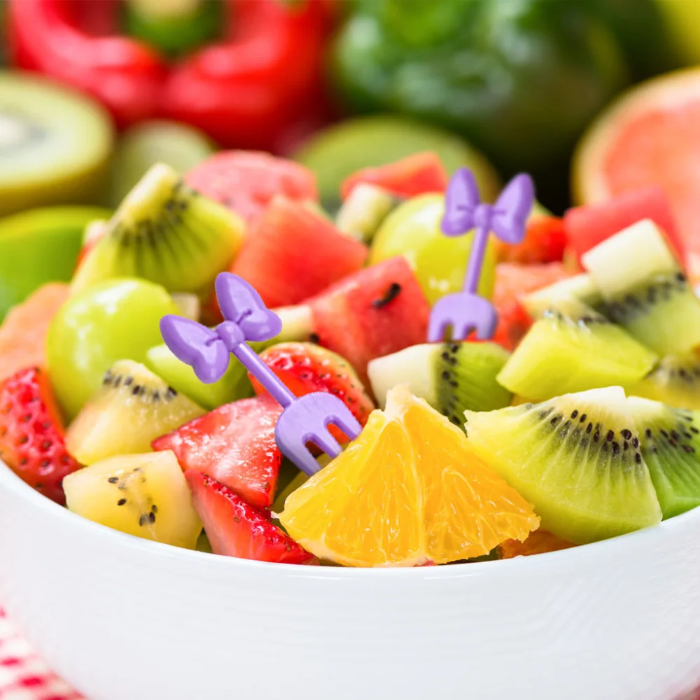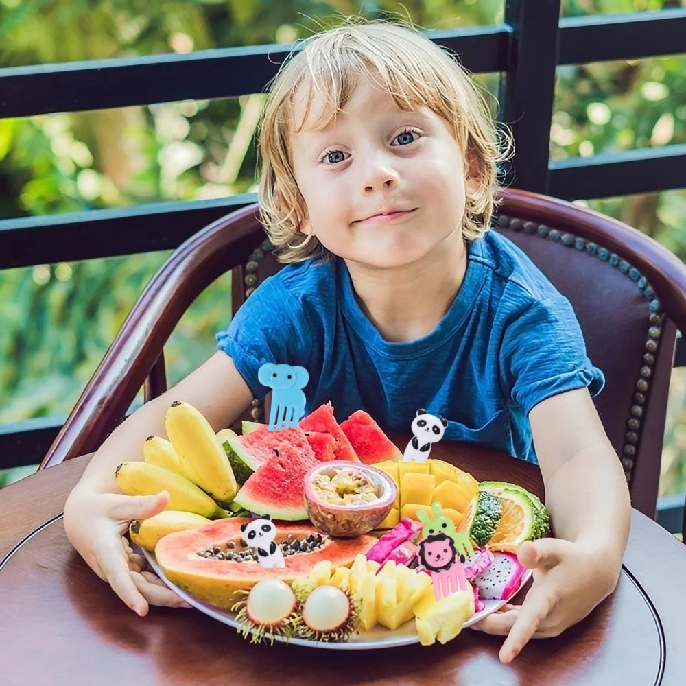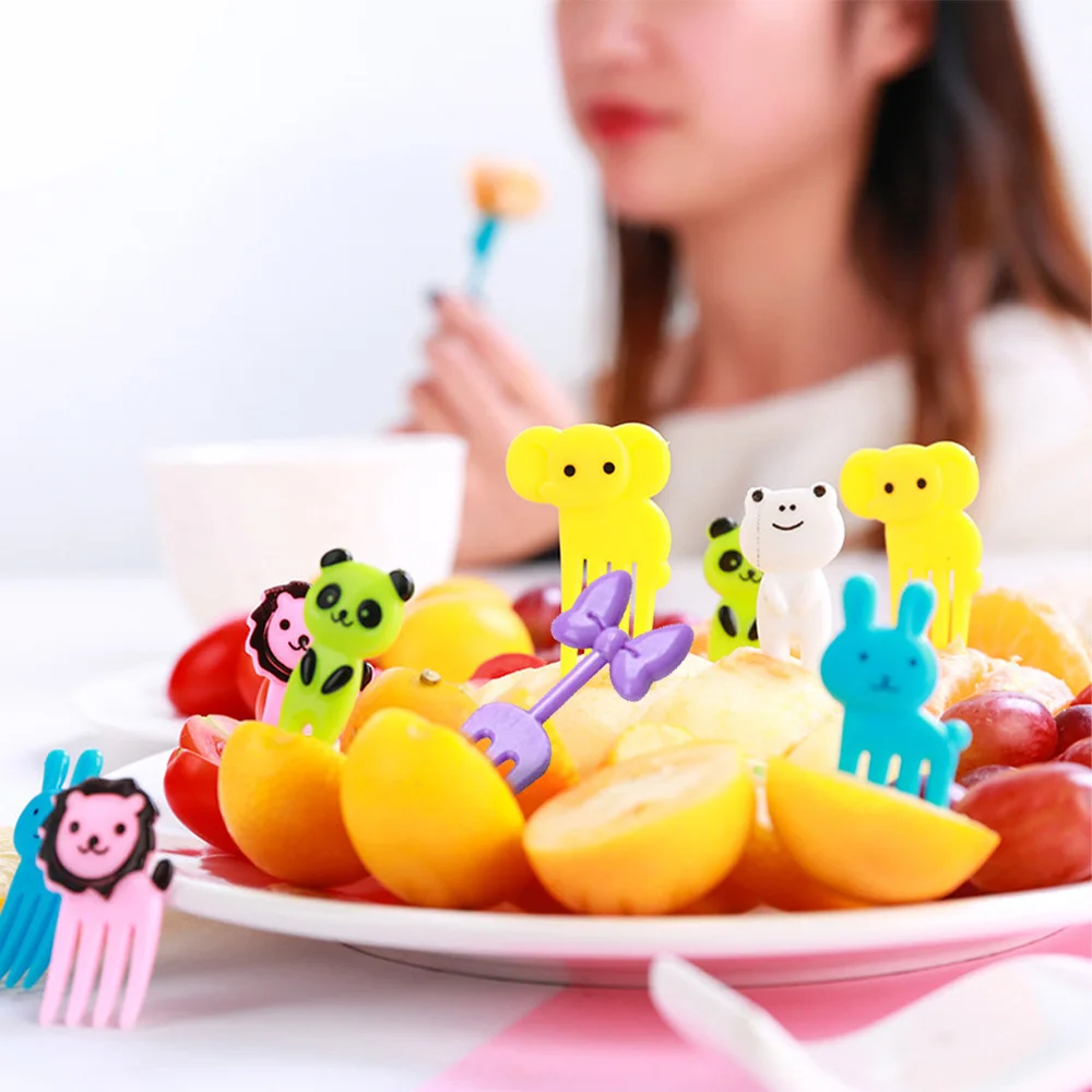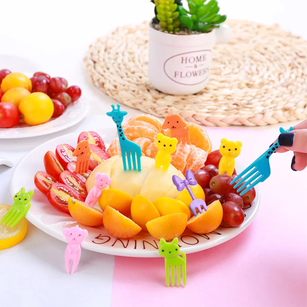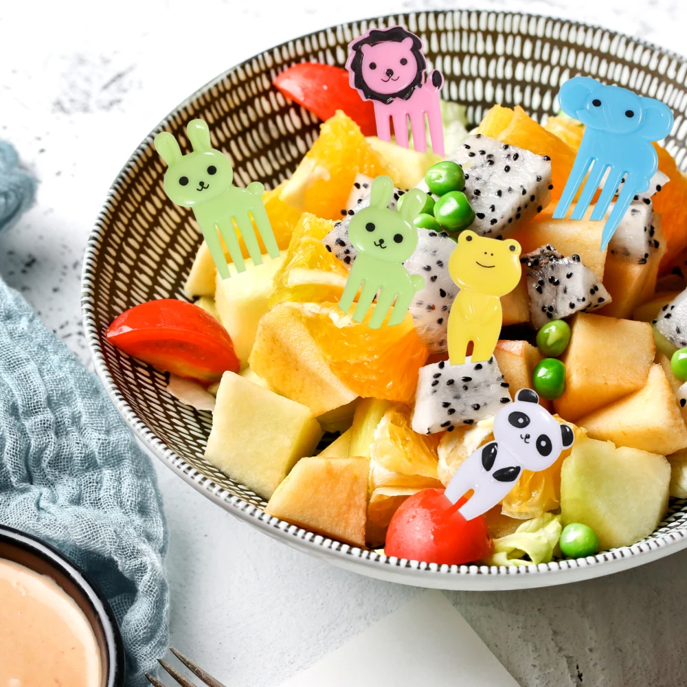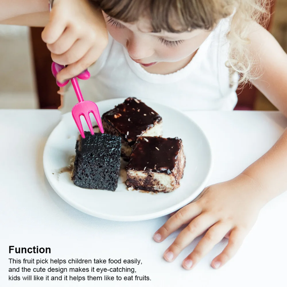Dekoracja: ten rodzaj widelec do owoców może być używany jako ozdoba do ciast, deserów, owoców, sałatek i innych potraw ze względu na styl kreskówki, możesz zamówić według własnych upodobań.