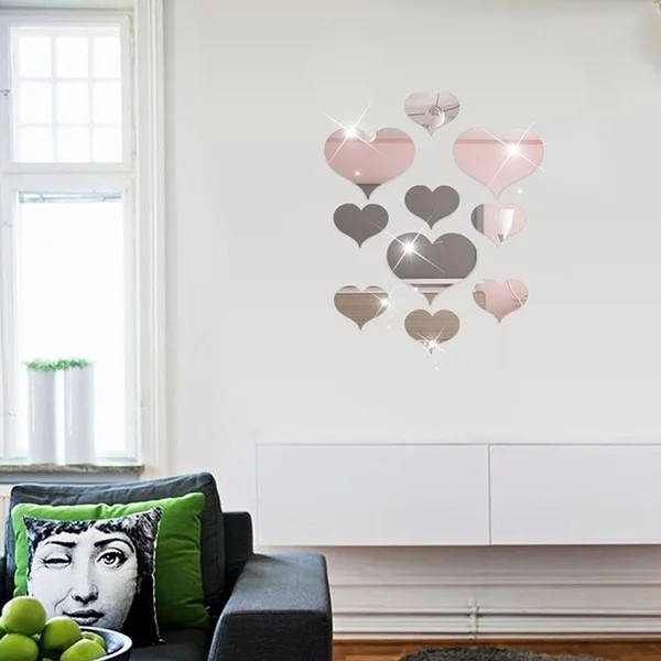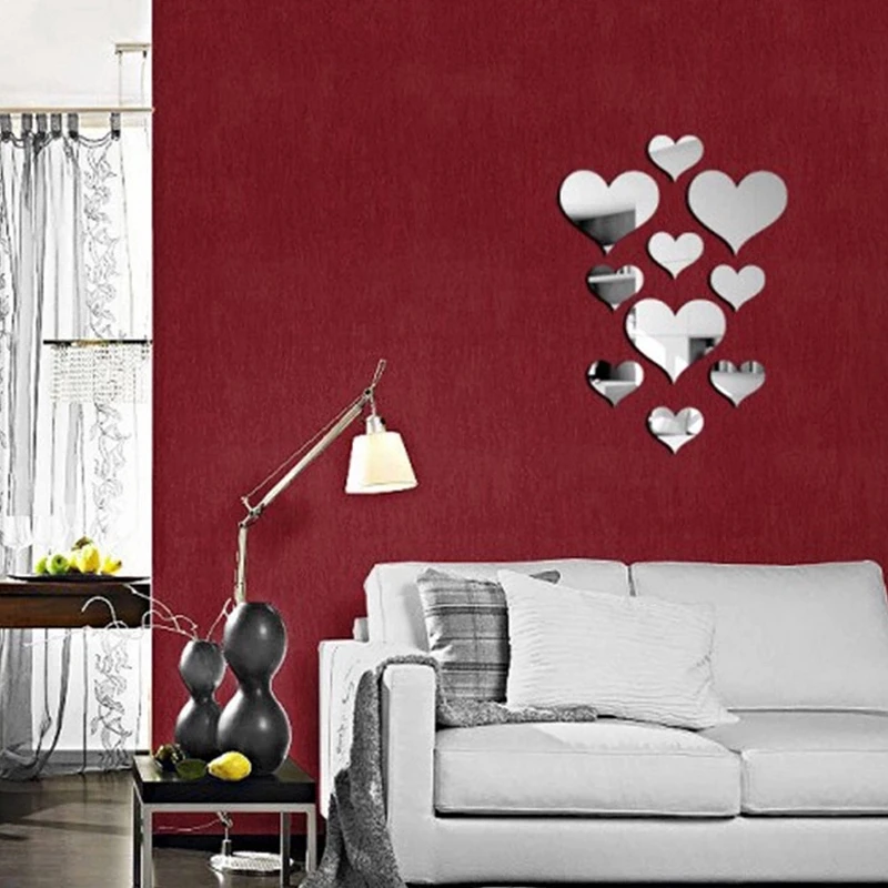 10 sztuk/zestaw odpinany Home Decoration Art akrylowe kalkomania Love Heart 3D naklejki ścienne z efektem lustra ściany domu ozdoby do paznokci DIY