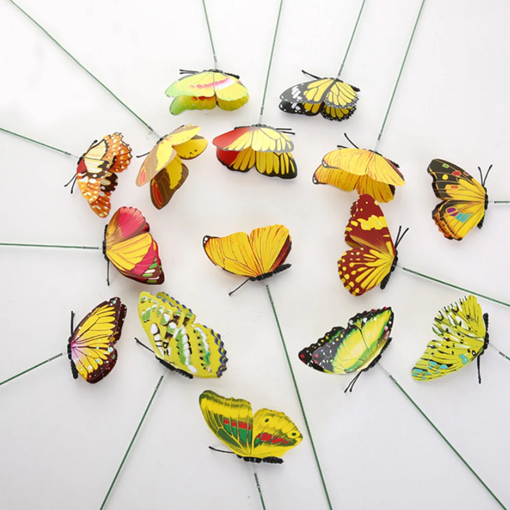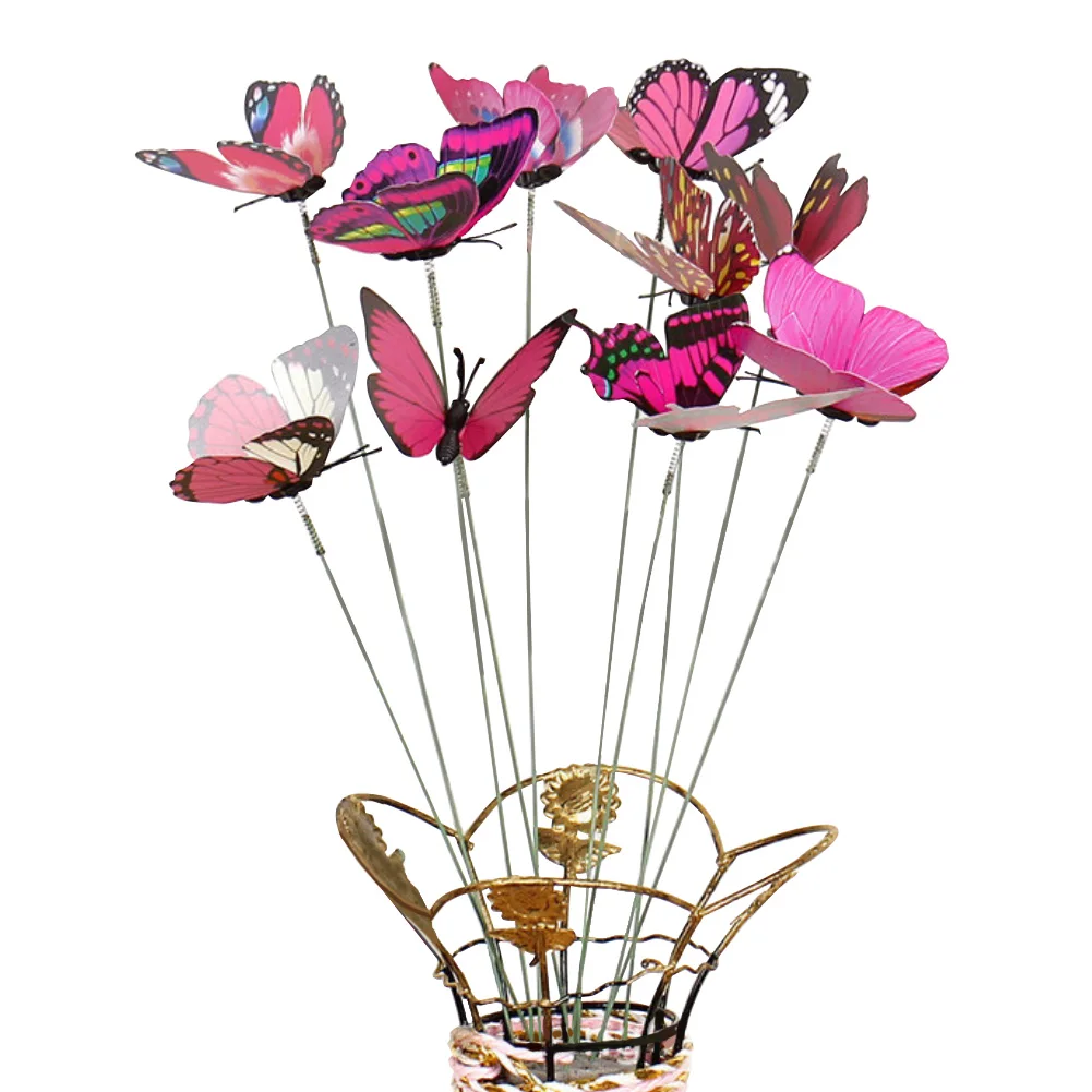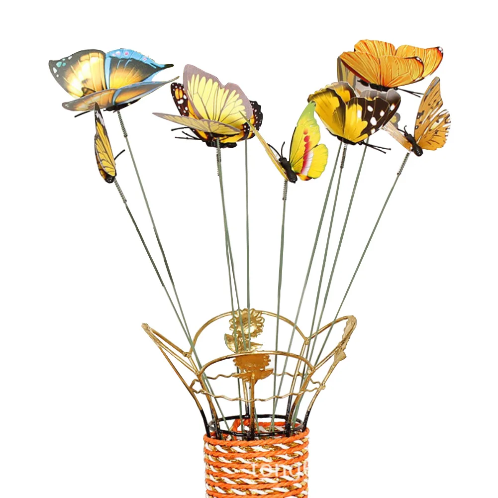 10 sztuk/zestaw niewiędnącego sztuczny motyl kij na zewnątrz doniczka ogrodowa ozdoba dekoracyjna