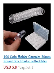 Ilość: 1 zestaw (1 x cały schowek, 100 x okrągłe kapsułki w kształcie monet)