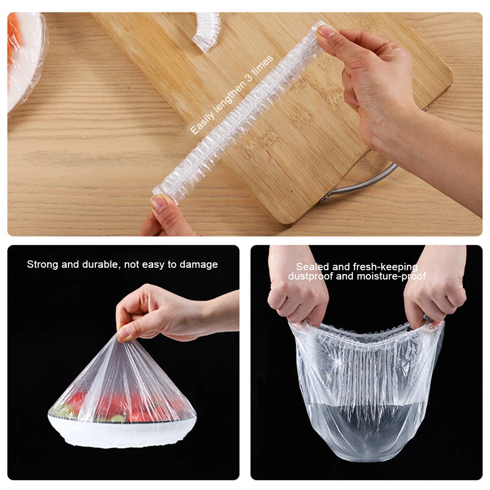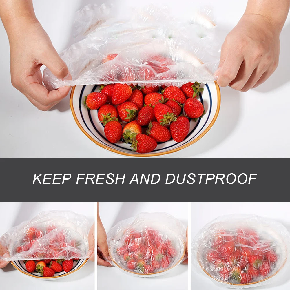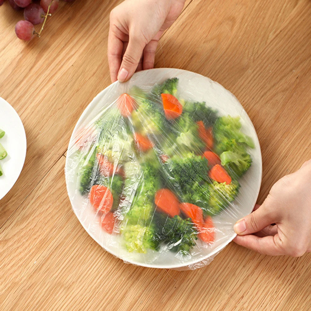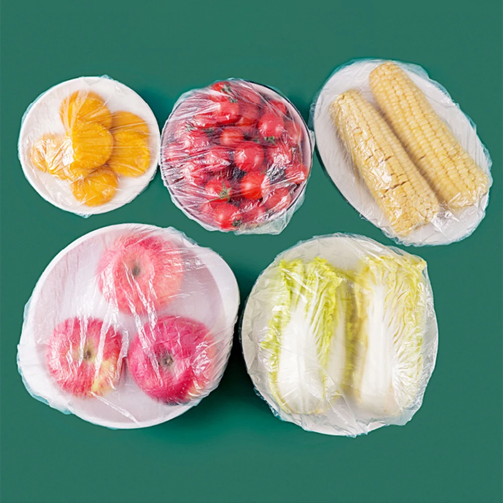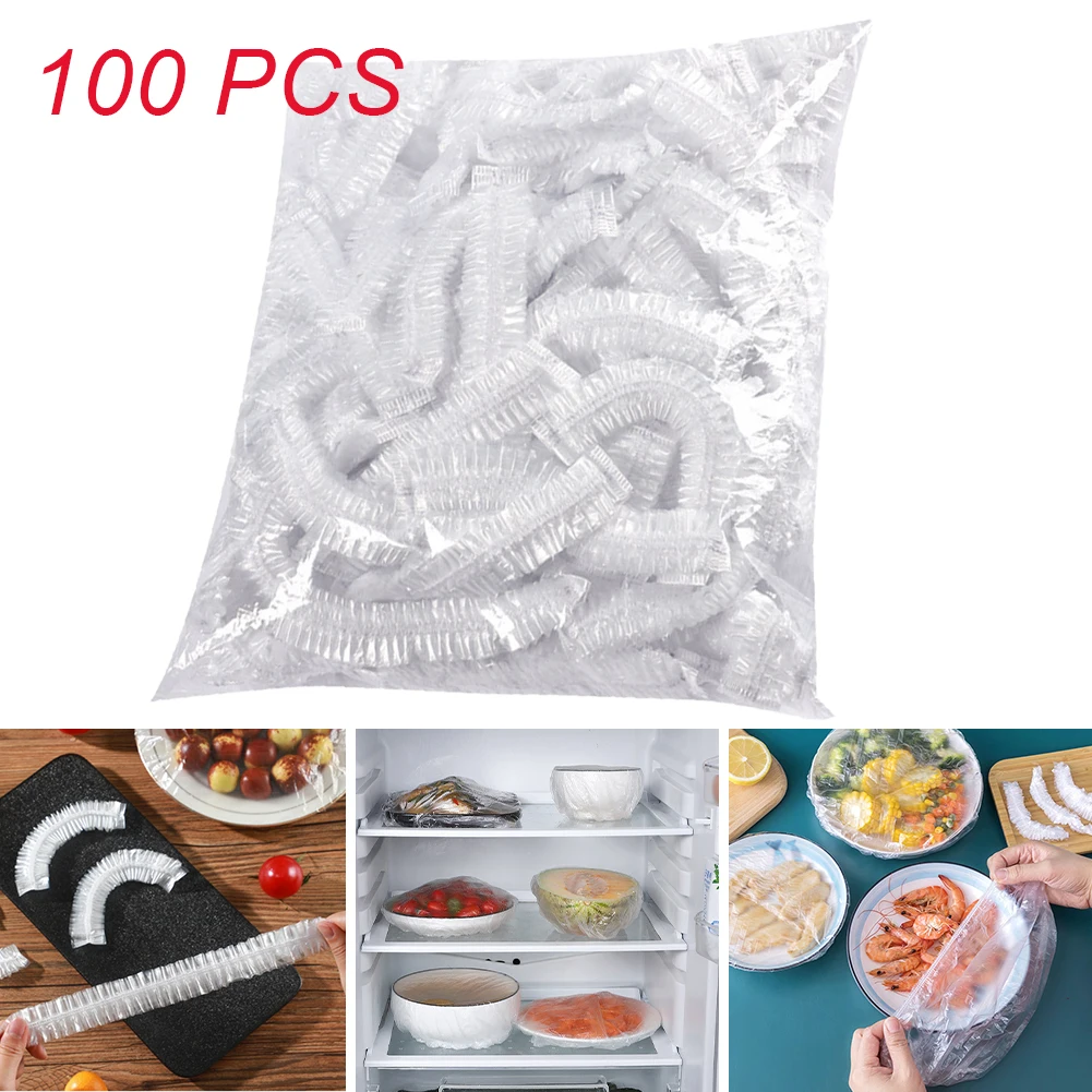 100 sztuk jednorazowe do jedzenia pokrywa folia plastikowa elastyczne pokrywy żywności przechowywanie kuchnia zachowywanie świeżości Saver torba na miska na owoce kubki czapki