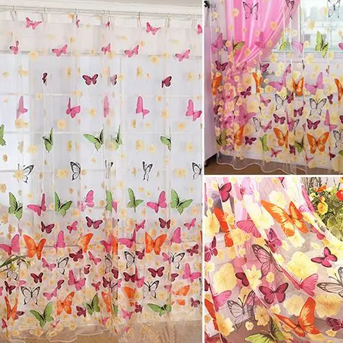 Motyl tiul drzwi okno przesiewowe kurtyna przezroczysta zasłona szalik panelowy valances.