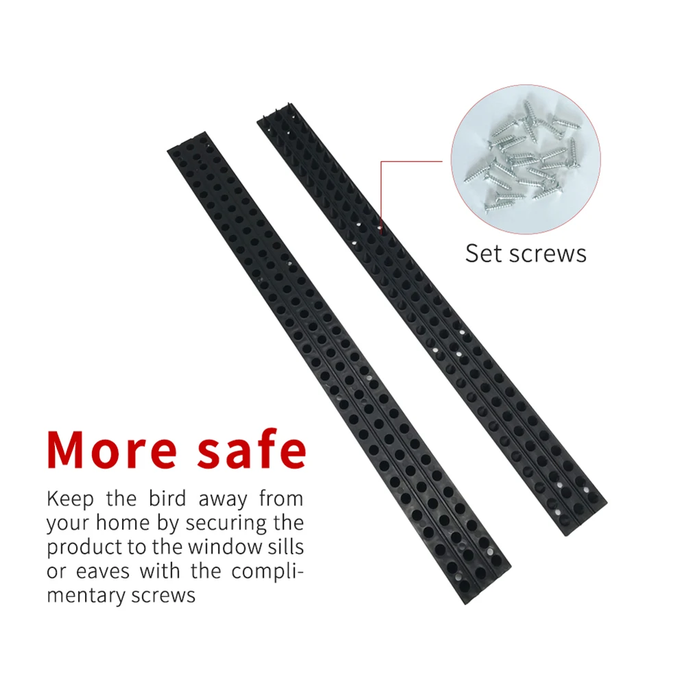 Zainstaluj w dowolnym miejscu-proste paski plastikowe do zainstalowania na dowolnej płaskiej powierzchni (ogrodzenia, bramy, szopy, balustrady, półki, ściany graniczne). Kolce anty-wspinaczkowe zatrzymują intruzów i kotów, szopów, ptaków i innych.