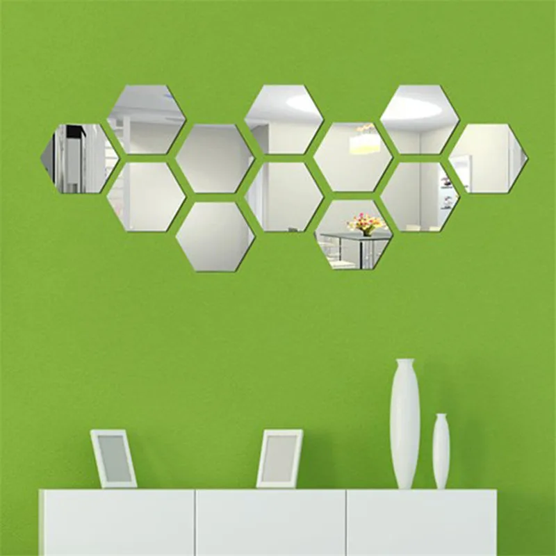 12 sztuk DIY 3D lustro geometryczne naklejki ścienne lustro do wystroju domu dekoracyjne naklejki ściana artystyczna naklejki dekoracyjne wielobarwne Drop ship