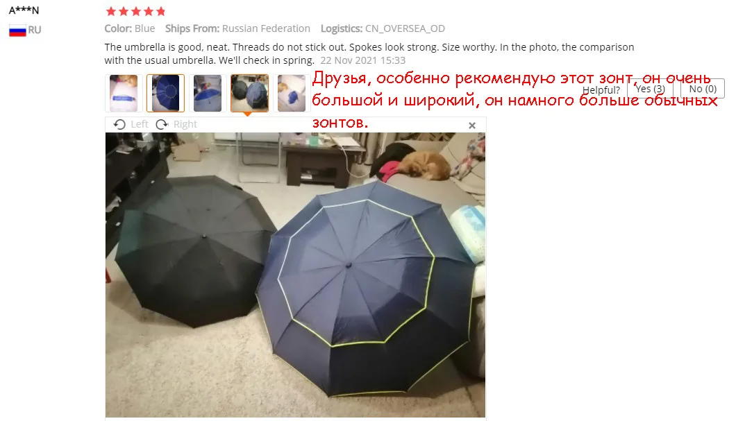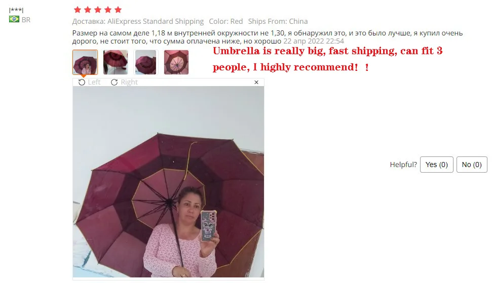 „Zdjęcie kupującego pokazuje dokładnie, jak duży jest parasol”.