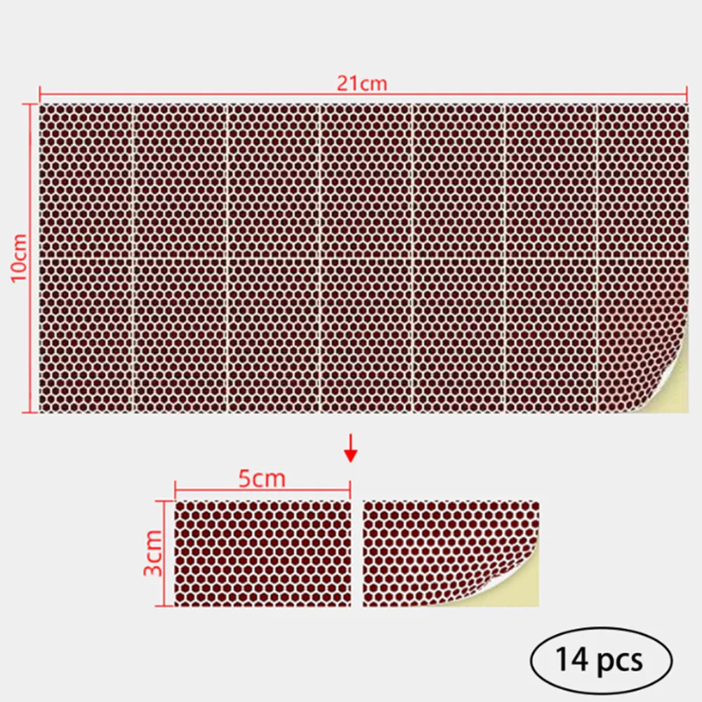 SIZE – 14 Count adhesive striker strips measuring 5.5cmX1.7cm May be trimmed with scissors for custom sizes.