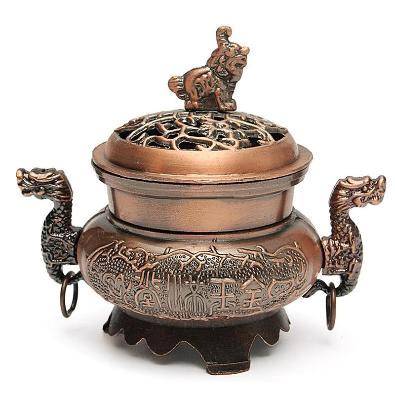 Kadzidełko ze stopu podwójny styl smoka Hollow Cap Censer stożkowy szpikulec Decor