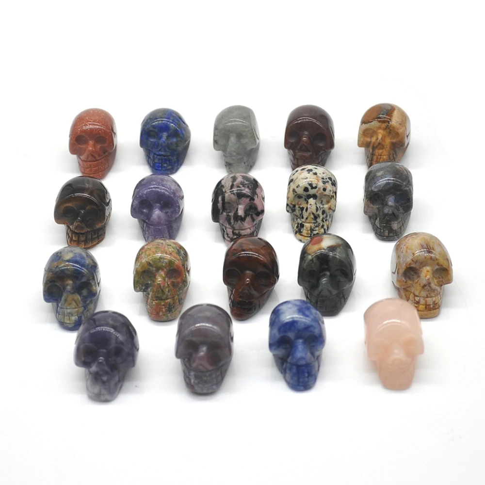 1PC czaszka statua naturalne uzdrawiające kryształy kwarcowy Jasper Jade ręka ducha rzeźbione Halloween do odmu…