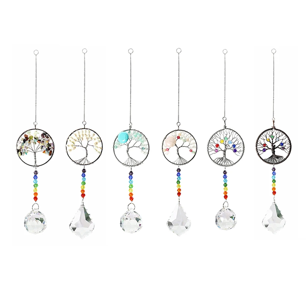 Kryształowy dzwonek wietrzny wisiorek kolorowe życie drzewo koraliki wiszące kropla na zewnątrz kryty ogród okno ozdobna zasłona żyrandol DIY dekoracje
